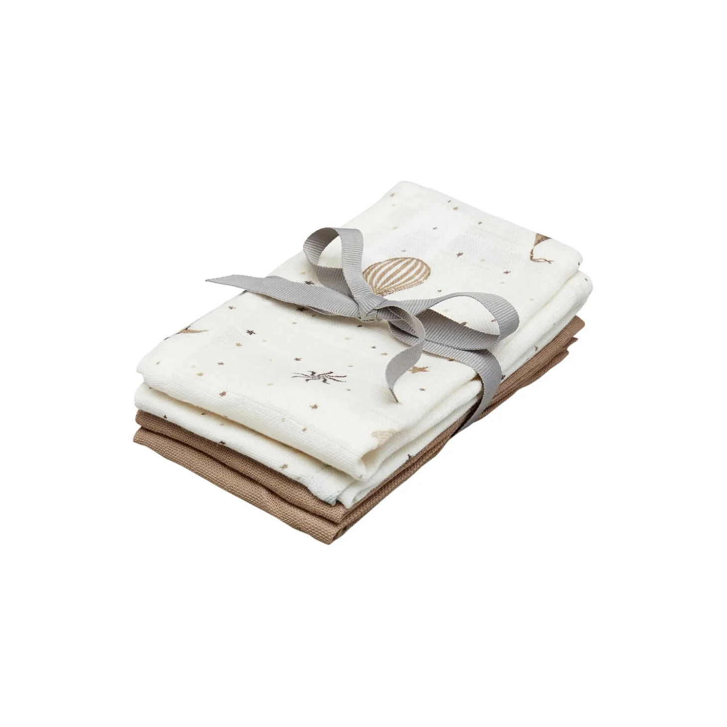 Sampak med fire bløde Muslin Vaskeklude i 2 x 2 smukke Cam Cam Copenhagen prints. Fremstillet af 100% økologisk bomuld.