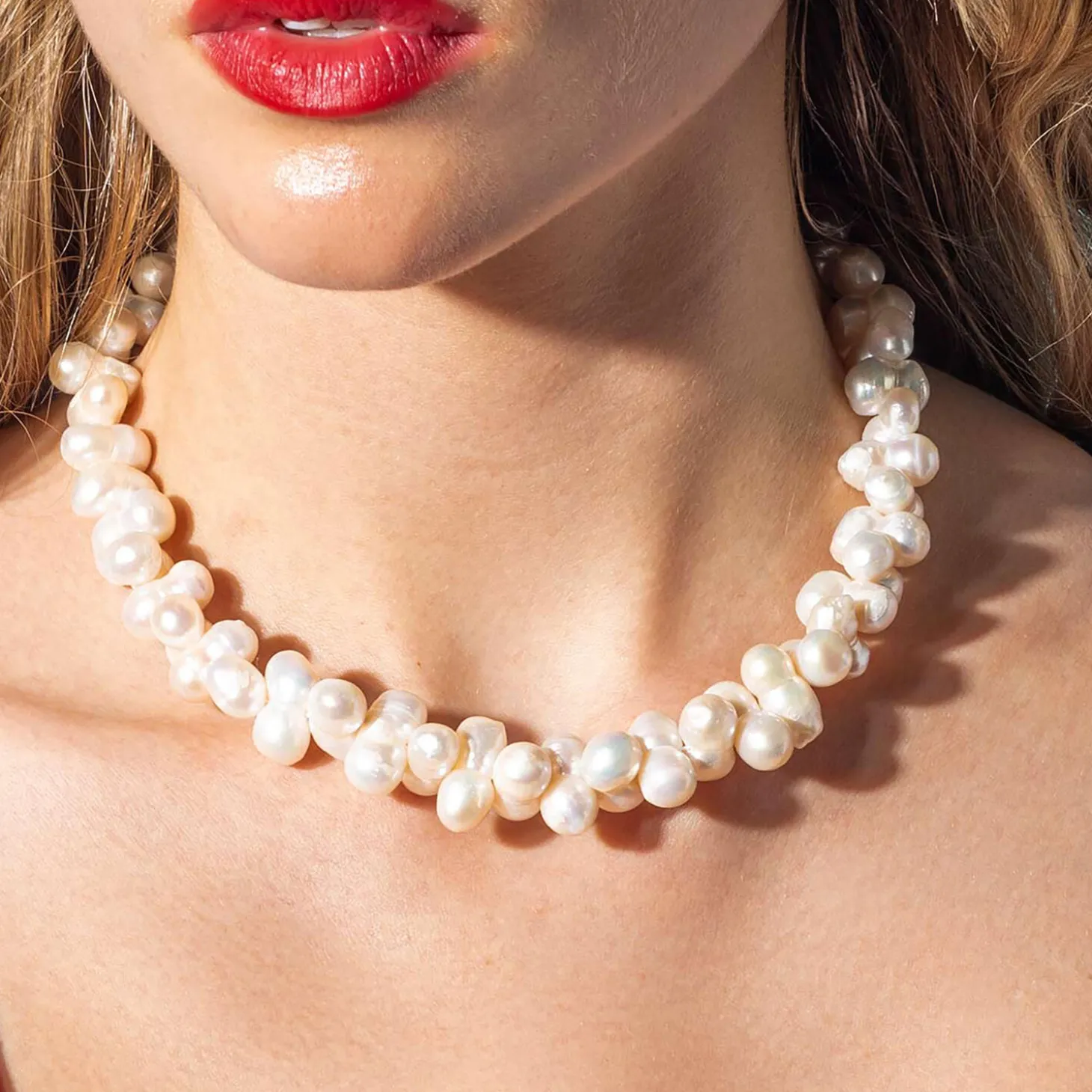 En eventyrlig fortolkning af den klassiske perlekæde – Cloud Cluster kæden er lavet af ægte siamesiske ferskvandsperler.