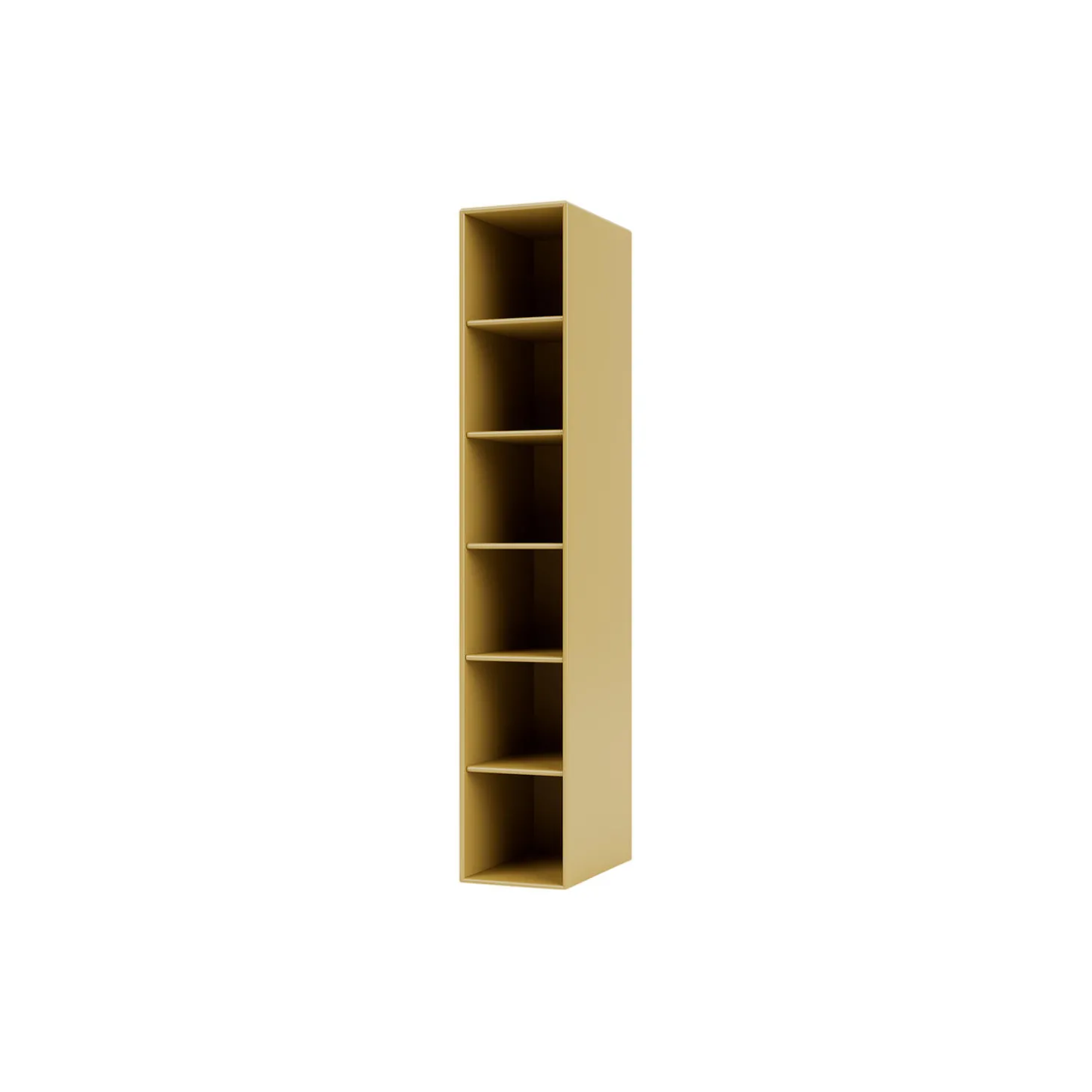Den sidehængte reol med fem hylder fra Montana Hall serien er en lille smal reol, idéel som opbevaringsmøbel til den lille entré. Reolen er med ophængsbeslag på højre side og kan fås med eller uden figurspejl.