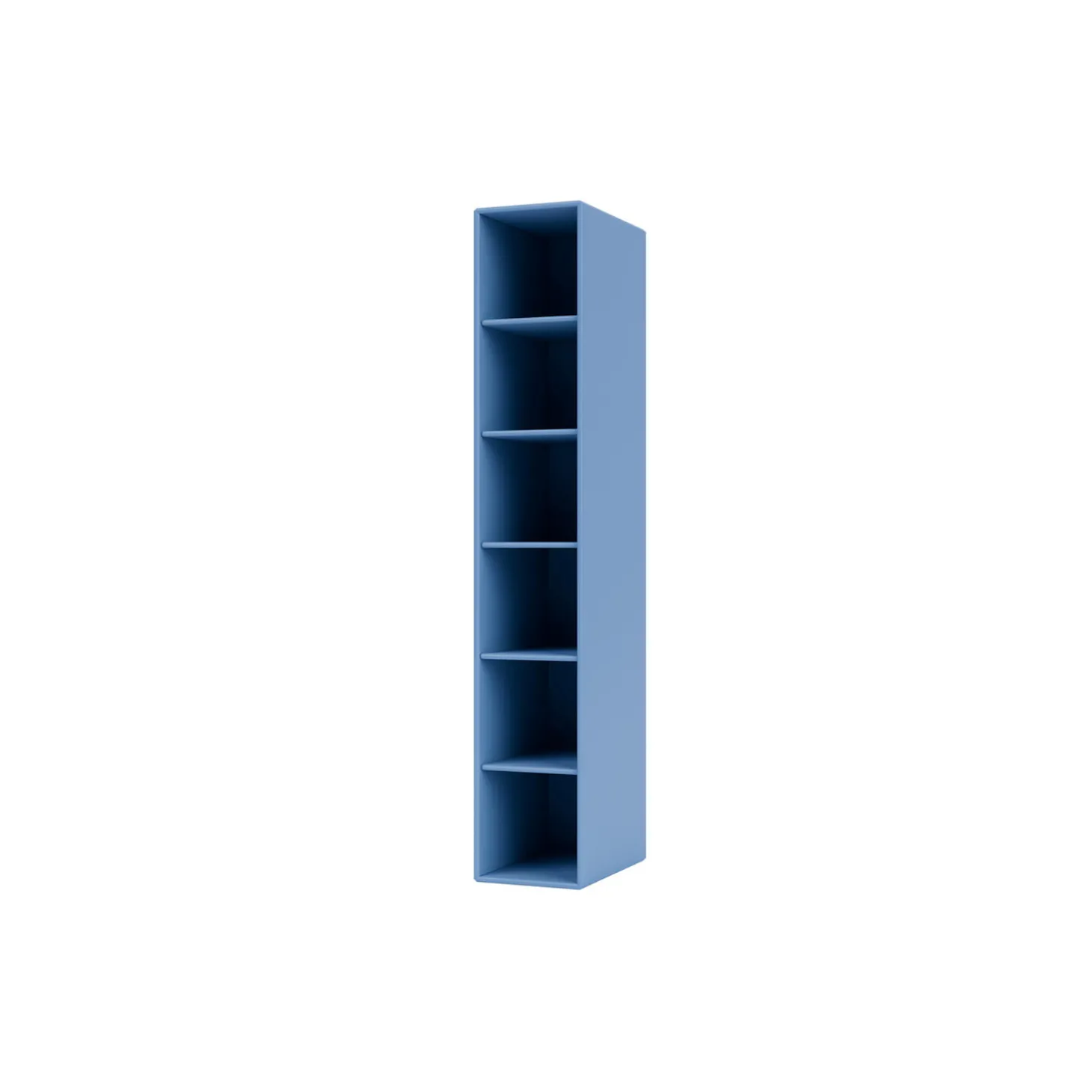 Den sidehængte reol med fem hylder fra Montana Hall serien er en lille smal reol, idéel som opbevaringsmøbel til den lille entré. Reolen er med ophængsbeslag til venstre side og kan fås med eller uden figurspejl.
