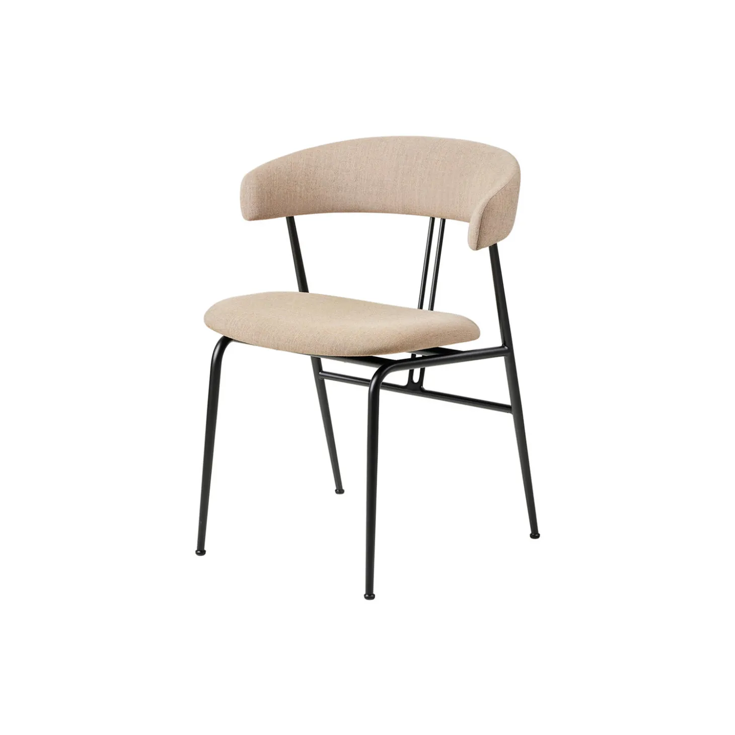 Violin Dining Chair fuldpolstret i Remix 3 233 tekstil af Kvadrat og stel i lakeret stål fra GUBI. Farve: Remix 233/black matt. Mål: H: 76 x B: 58 x D: 55,5 cm. Siddehøjde: 45 cm. Design: GamFratesi.