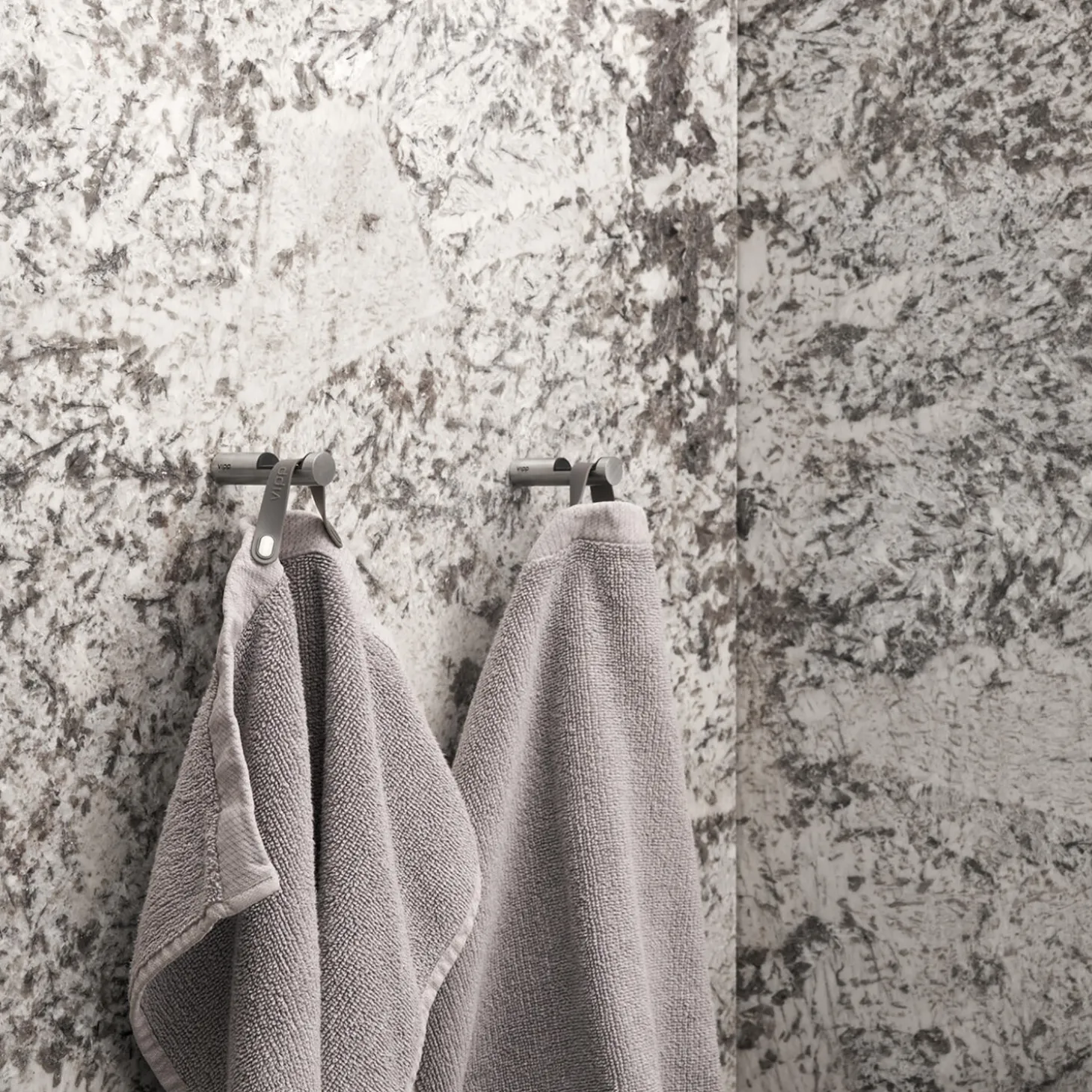 Sættet med to Vipp kroge er en praktisk ophængningsmulighed til både køkken og badeværelse. Krogene er udstyret med en indsats, der holder godt fast i viskestykker og håndklæder.