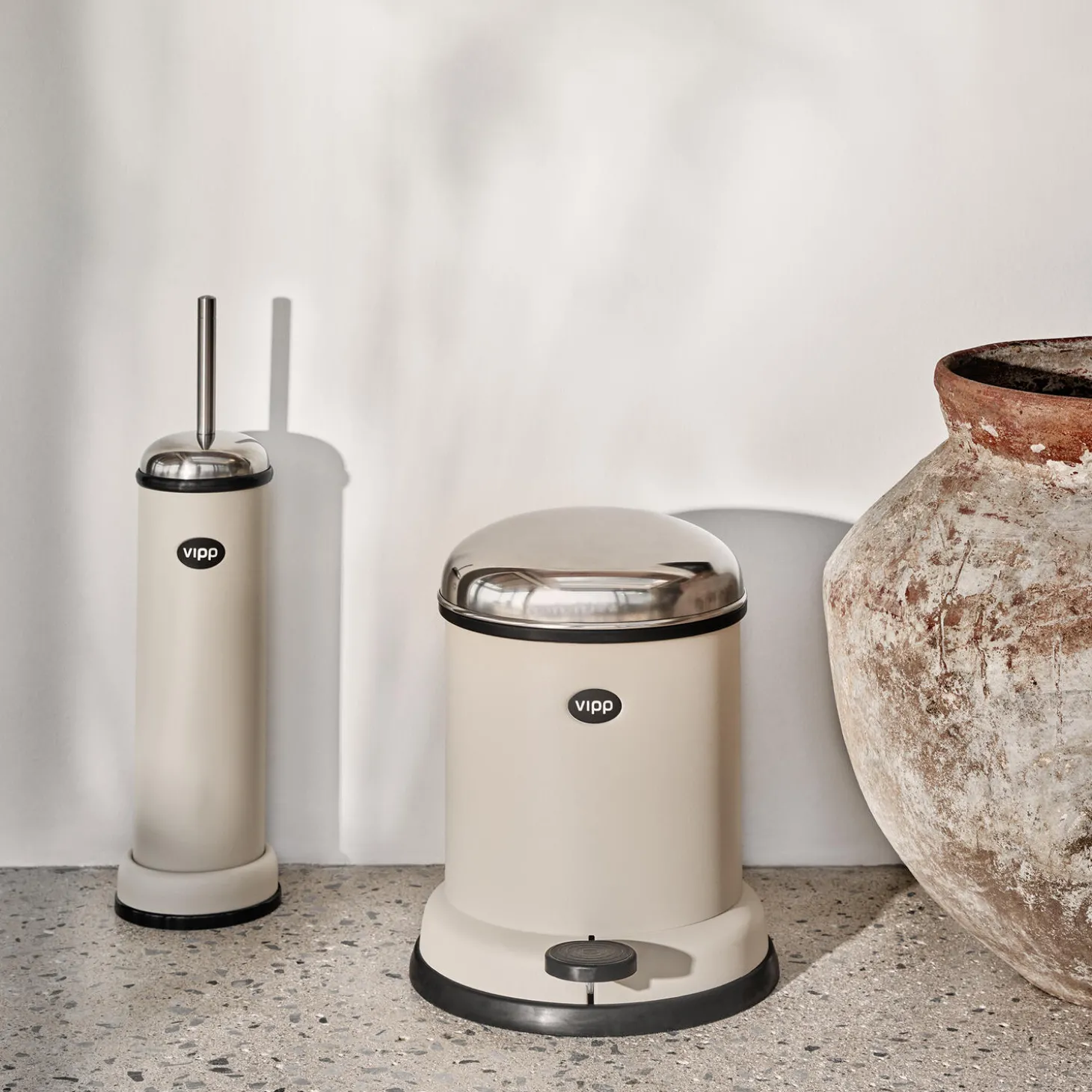Vipp toiletbørsten er et raffineret badeværelsesprodukt. En silikonering i toppen af toiletbørsten sikrer lufttæt tillukning, mens ekstra vægt i bunden skaber stabilitet. Toiletbørsten er udstyret med et udskifteligt børstehoved og inderrør.