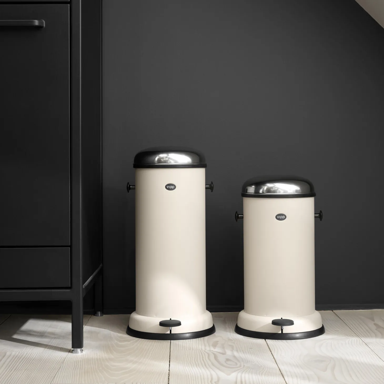 Vipp15 pedalspanden er en mellemstørrelse skraldespand til køkkenet, kontoret eller badeværelset. Denne pedalspand er udstyret med en udtagelig inderspand, et låg der sikrer lufttæt tillukning og en dæmpemekanisme, der lukker spandens låg i en blød bevægelse. En gummiring i bunden beskytter gulvet.