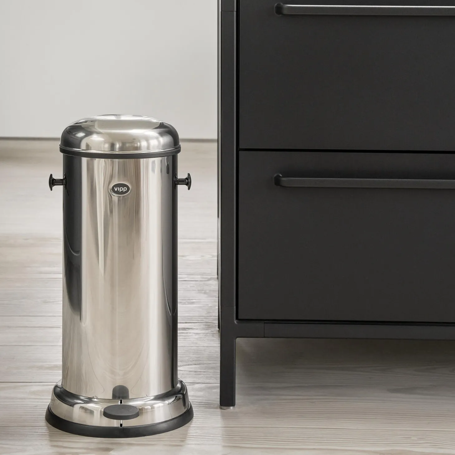Vipp16 pedalspand er en stor skraldespand til køkkenet, kontoret eller badeværelset. Denne pedalspand er udstyret med en udtagelig inderspand, et låg der sikrer lufttæt tillukning og en dæmpemekanisme, der lukker spandens låg i en blød bevægelse. En gummiring i bunden beskytter gulvet.