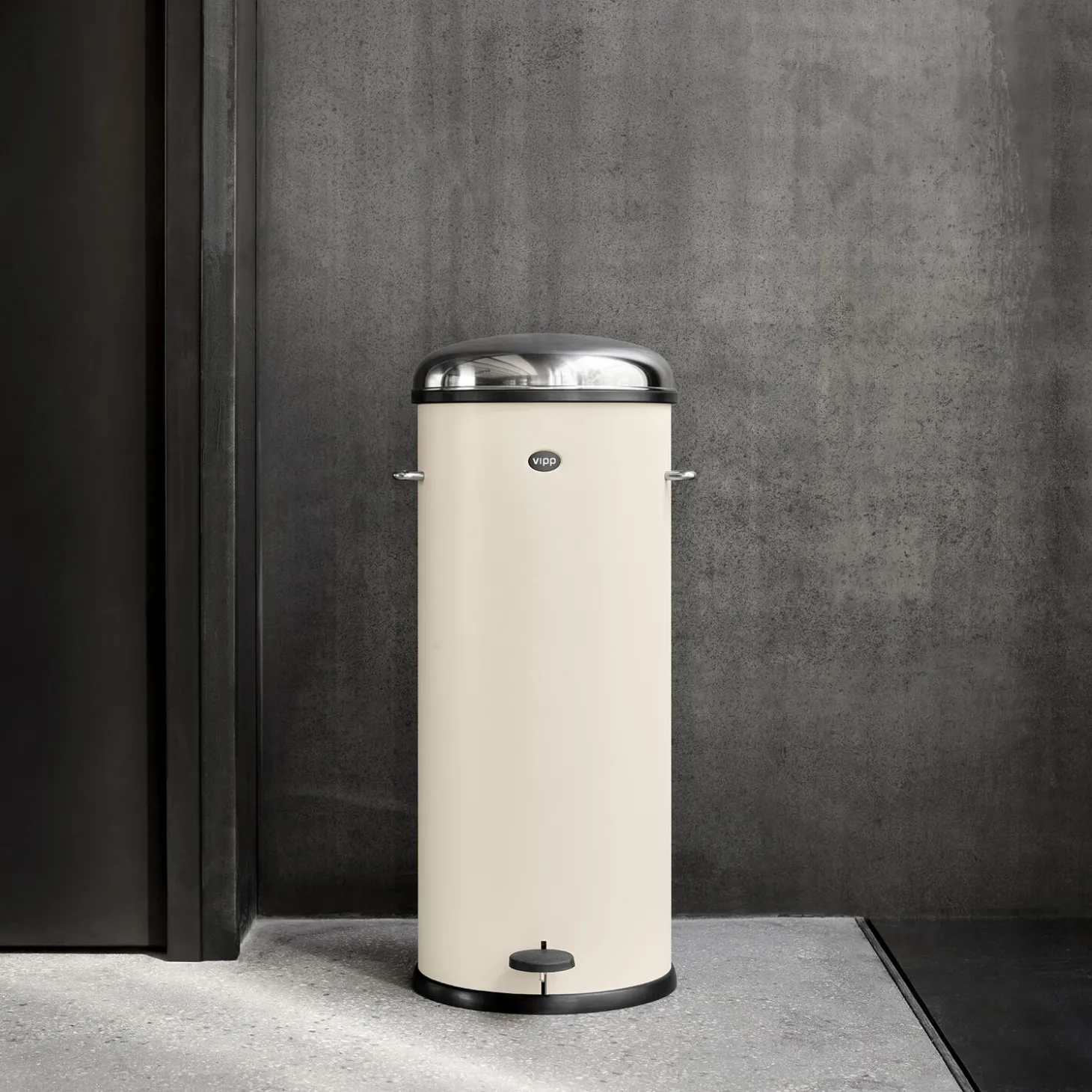 Vipp17 pedalspanden er den største af Vipp spandene, ideel til brug i køkkenet. Denne pedalspand er udstyret med en udtagelig inderspand, et låg der sikrer lufttæt tillukning og en dæmpemekanisme, der lukker spandens låg i en blød bevægelse. En gummiring i bunden beskytter gulvet.