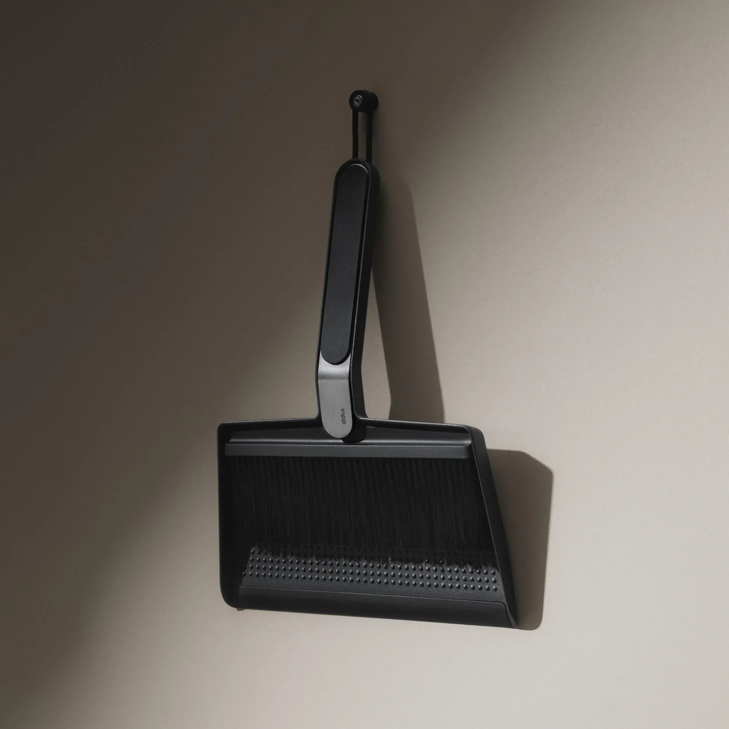 Vipp kost og fejebakkesættet er et smart værktøj til køkkenet. Kosten får let krummer og støv fra gulvet op på den vinklede fejebakke, der kan stå selv. Sættet kan hænges op på en krog med den integrerede strop.