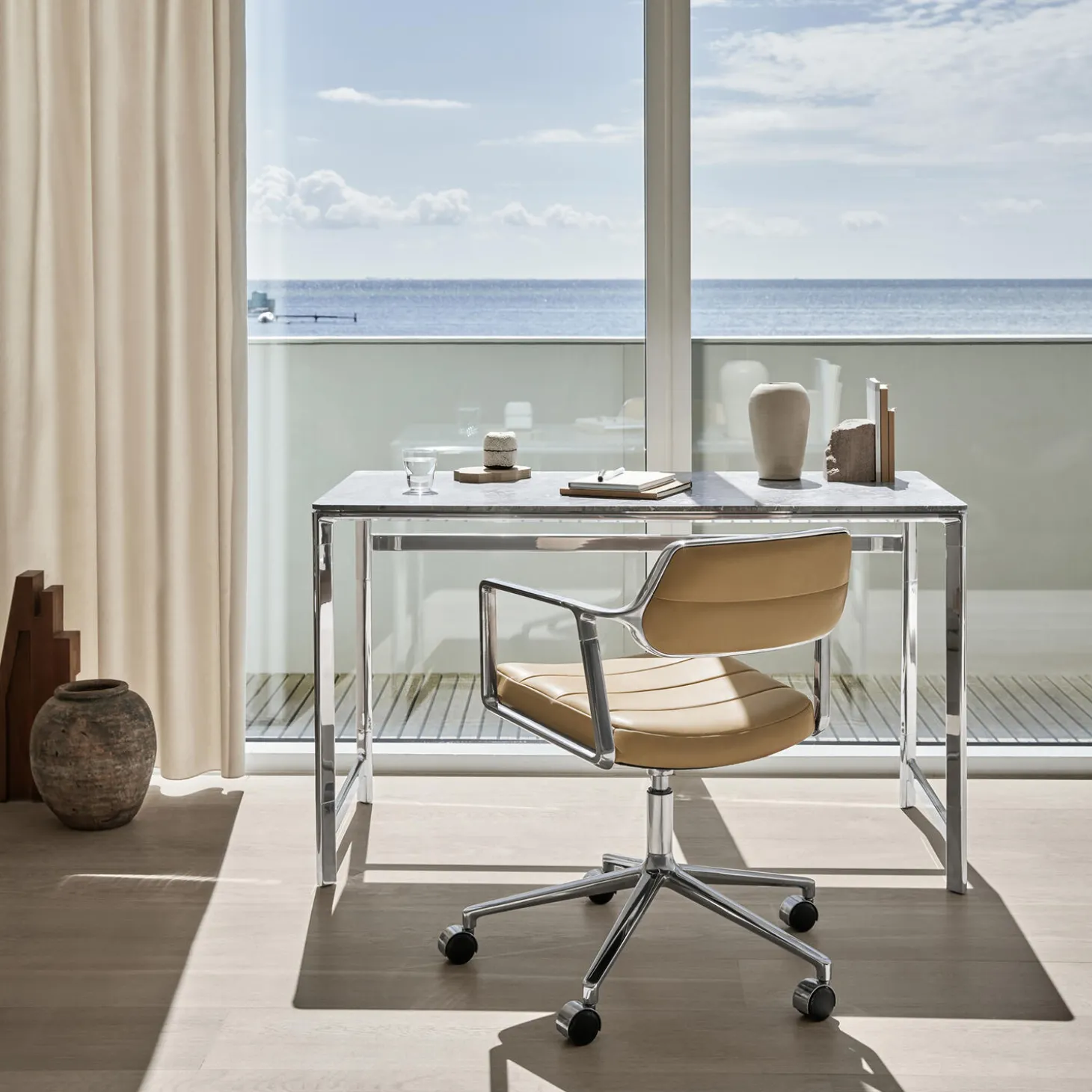 - Materiale: stel i poleret aluminium med polstring i anilinlæder