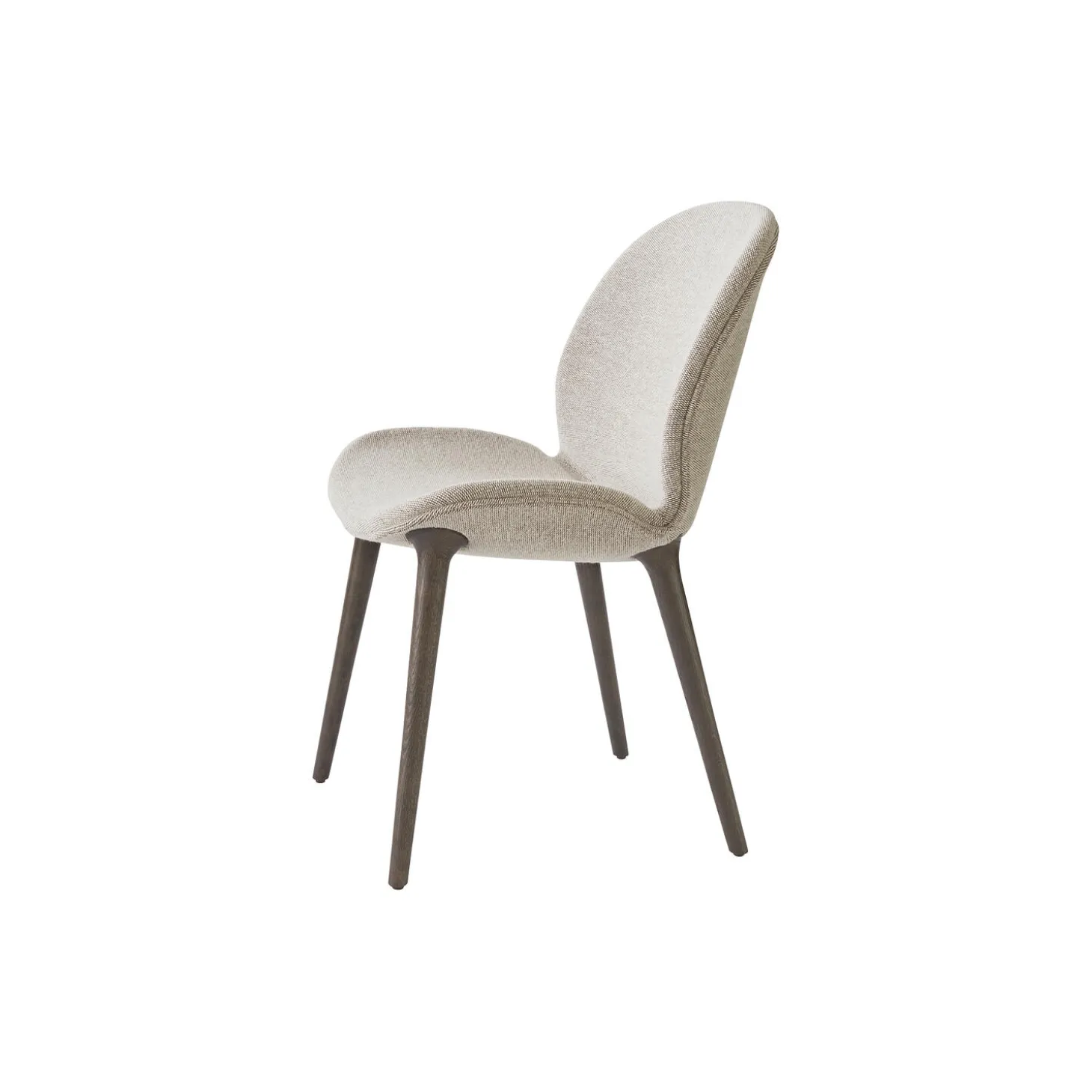 The Vipp Lodge chair is suitable for the dining- or living room. This dining chair features a moulded soft shell and legs of solid oak. The shell of the Lodge chair can be customised in Vipp’s entire upholstery range. Here shown in predefined variants with dark oak or light oak legs.