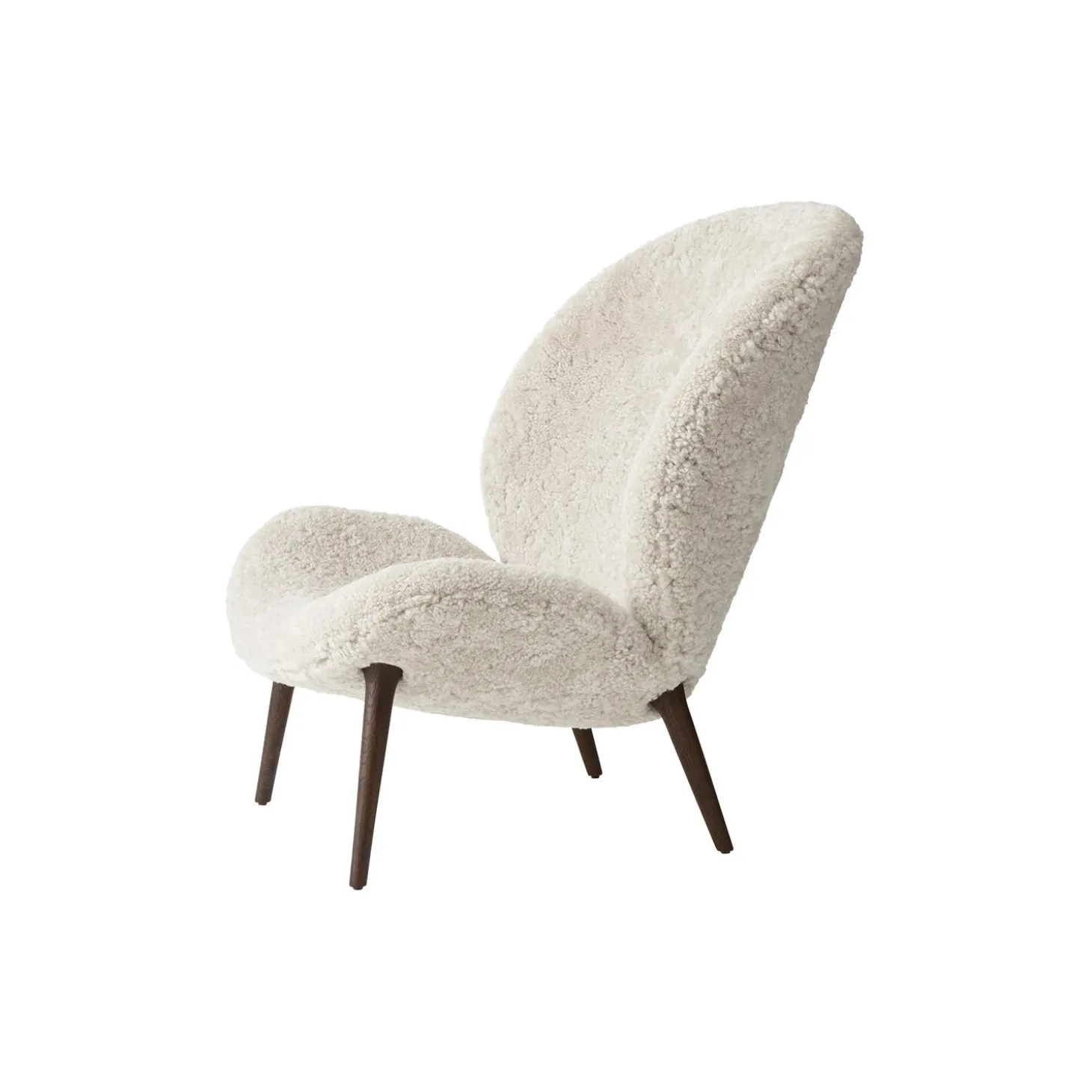 - Materiale: polstring i Curly 09 sheepskin og stel i lakeret mørk eg