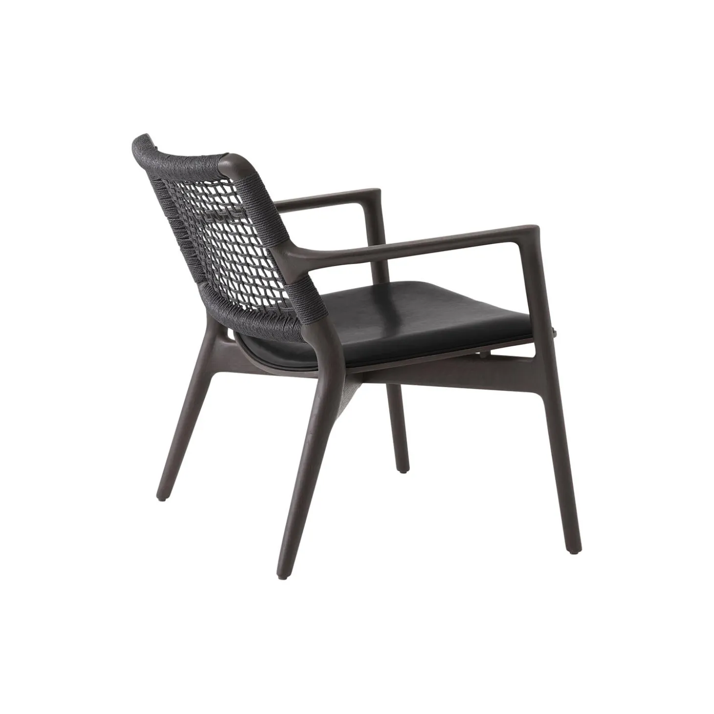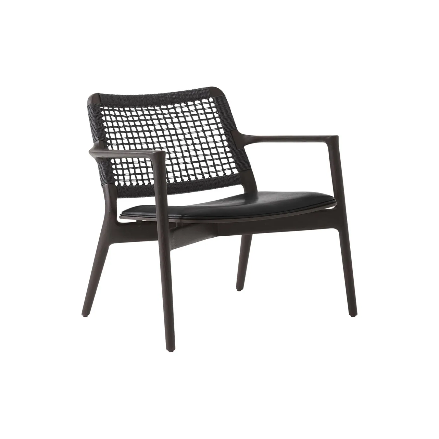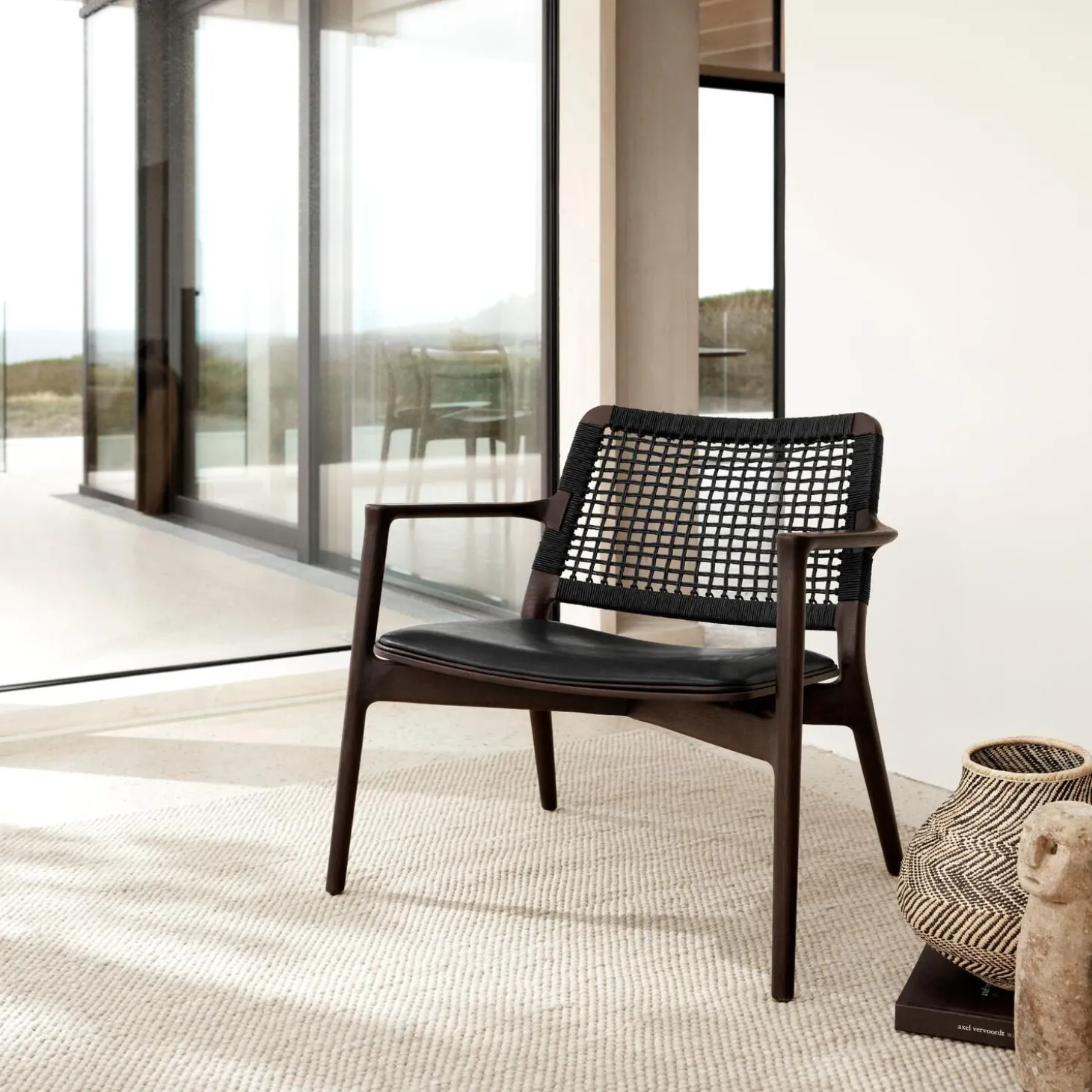 - Materiale: sædepolstring i læder, sæde i olieret mørkbejdset egetræsfinér, stel i olieret mørkbejdset eg og vævning af sort papirsnor