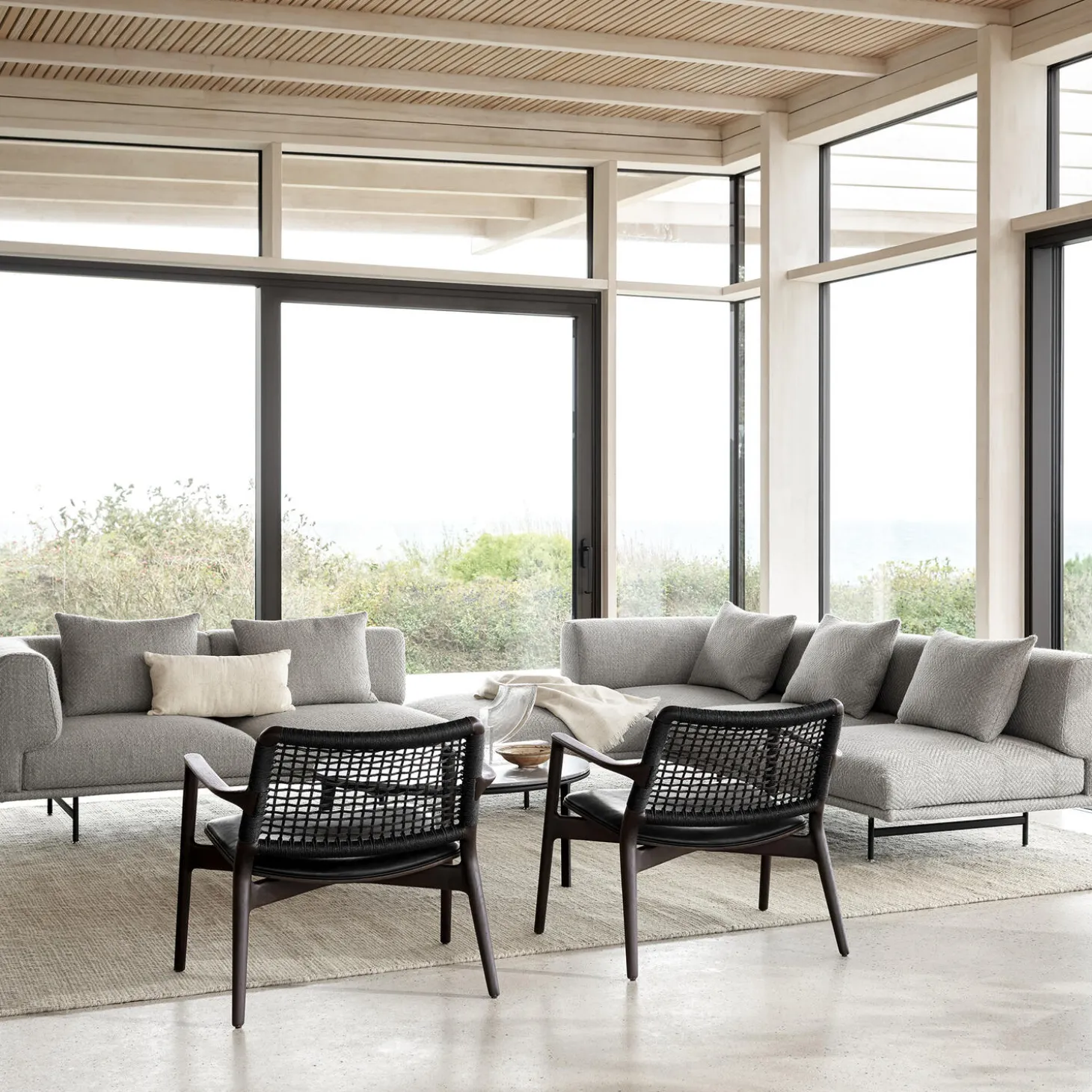 Vipp Cabin Lounge er en lenestol, der passer perfekt til stuen eller andre afslapningsområder. Den har en solid ramme af eg, der får et blødere udtryk grundet den polstrede skindpude og en rygstøtte lavet af håndflettet papir.