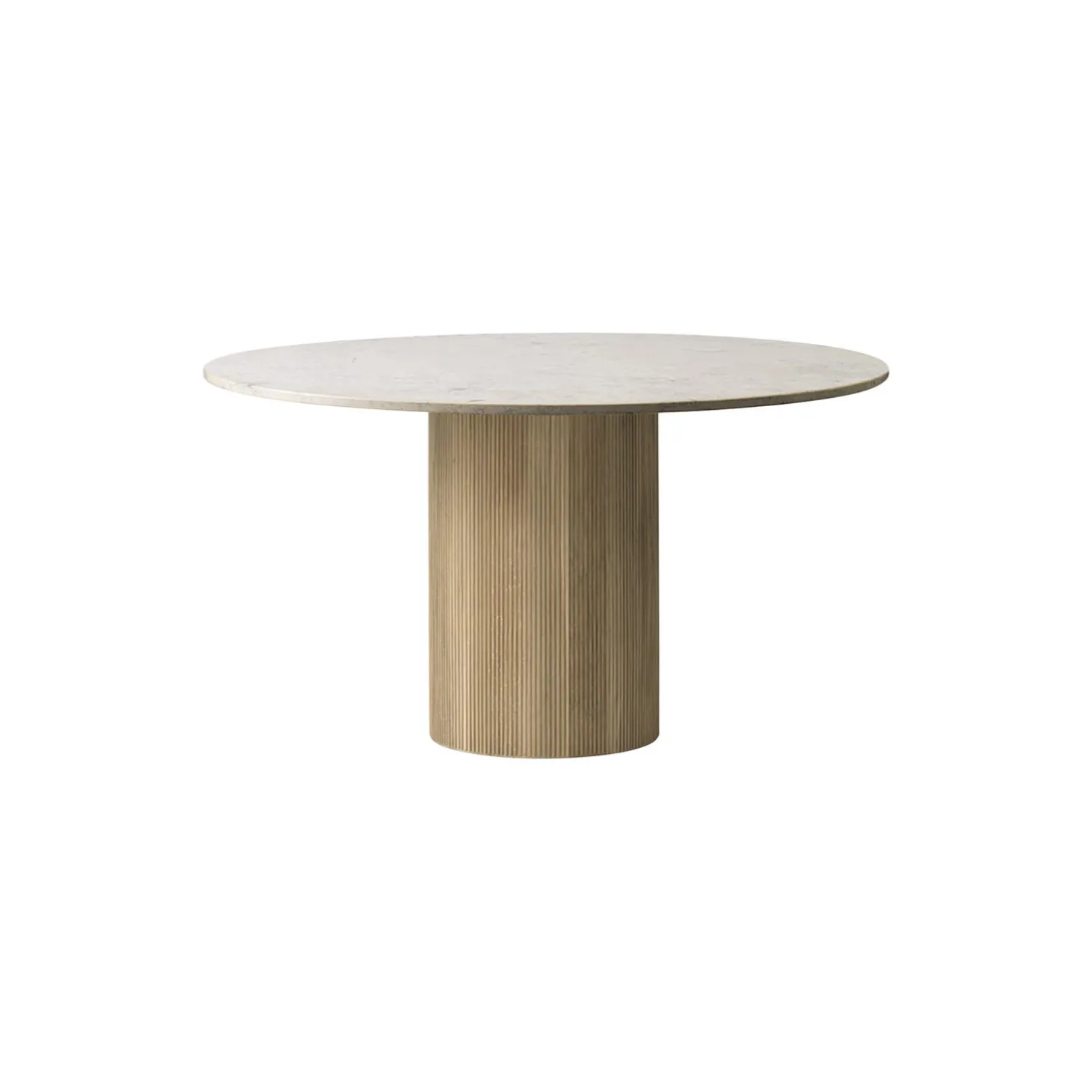 The Vipp Cabin round table is a two-sized table for the dining room or kitchen. This table features a base of solid, lacquered dark or light oak with a marble tabletop.