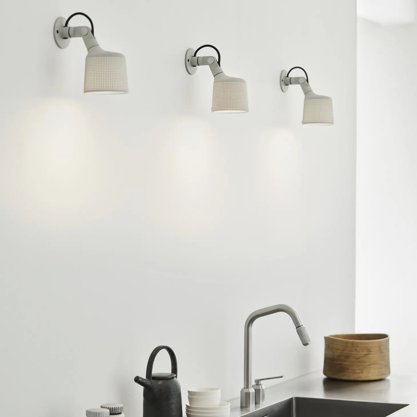 Vipp vægspot er en fleksibel vægbelysning til badeværelse, gang, køkken eller stue. Vægspotten har en perforeret lampeskærm, der kaster et blødt lys.