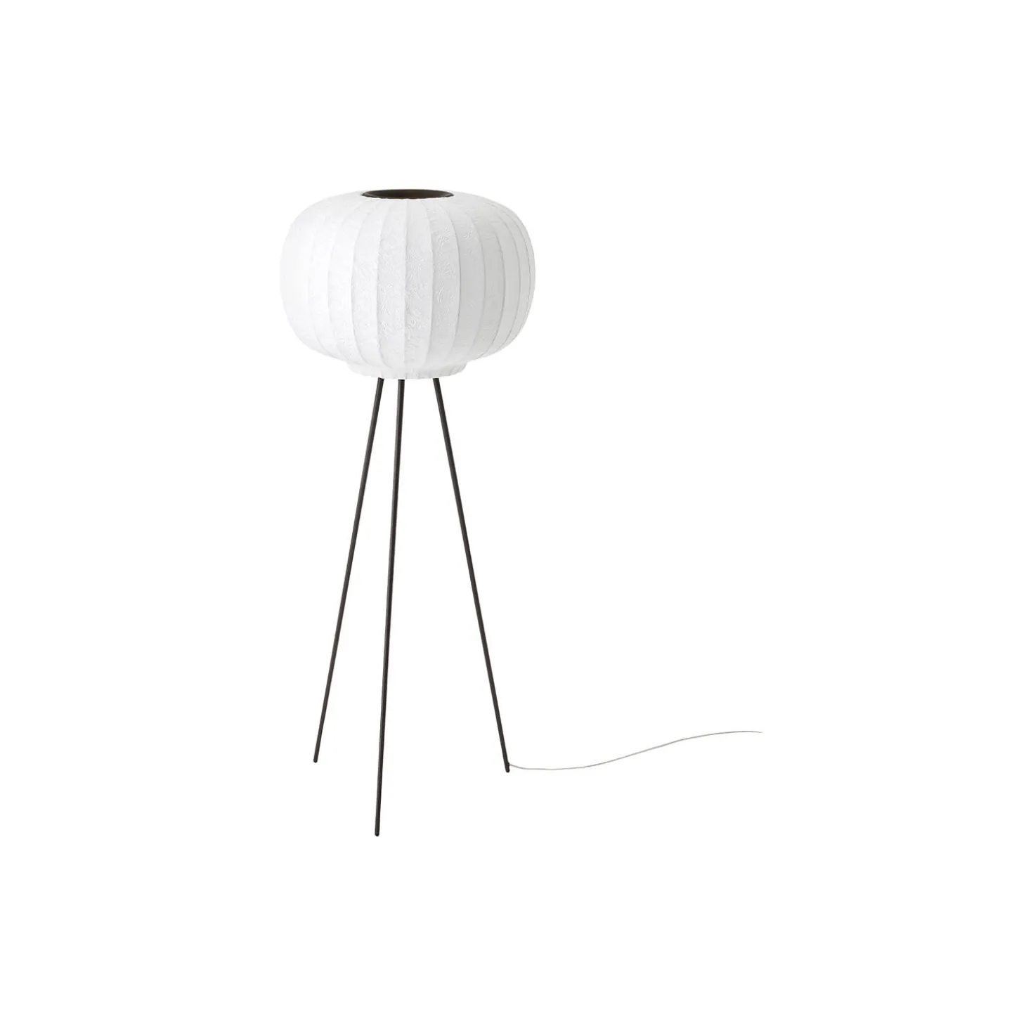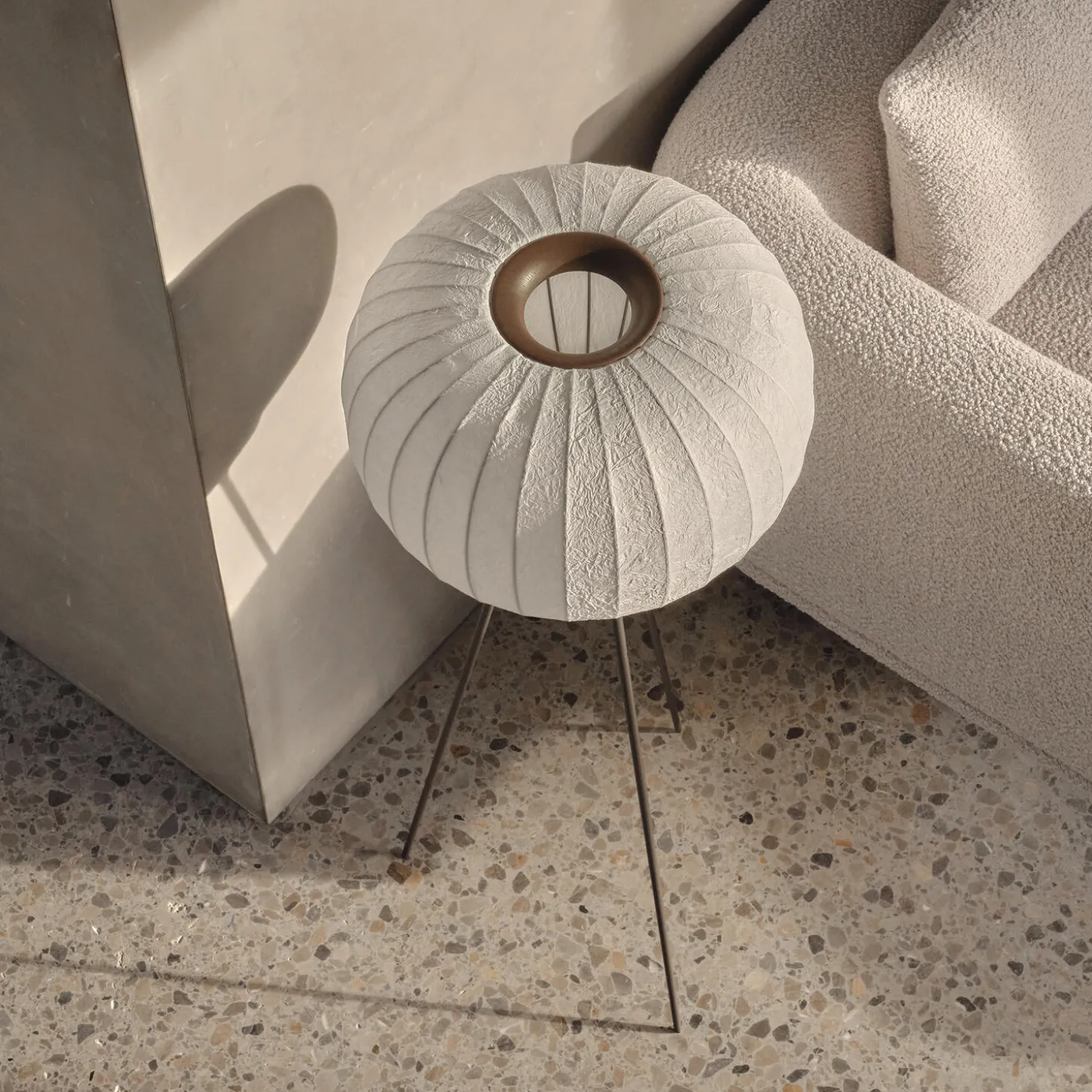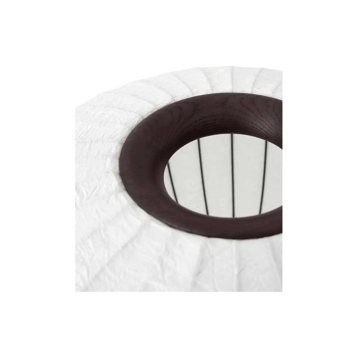 Paper floor lamp fra Vipp passer både til stuen og soveværelset. Lampen har en lampeskærm af papir og et indvendigt metalgitter. Lampeskærmen hviler på et stativ af mørkebrunt, pulverlakeret aluminium. Papiret er i toppen fæstnet i en ring af mørk egetræ og giver et varmt lys.