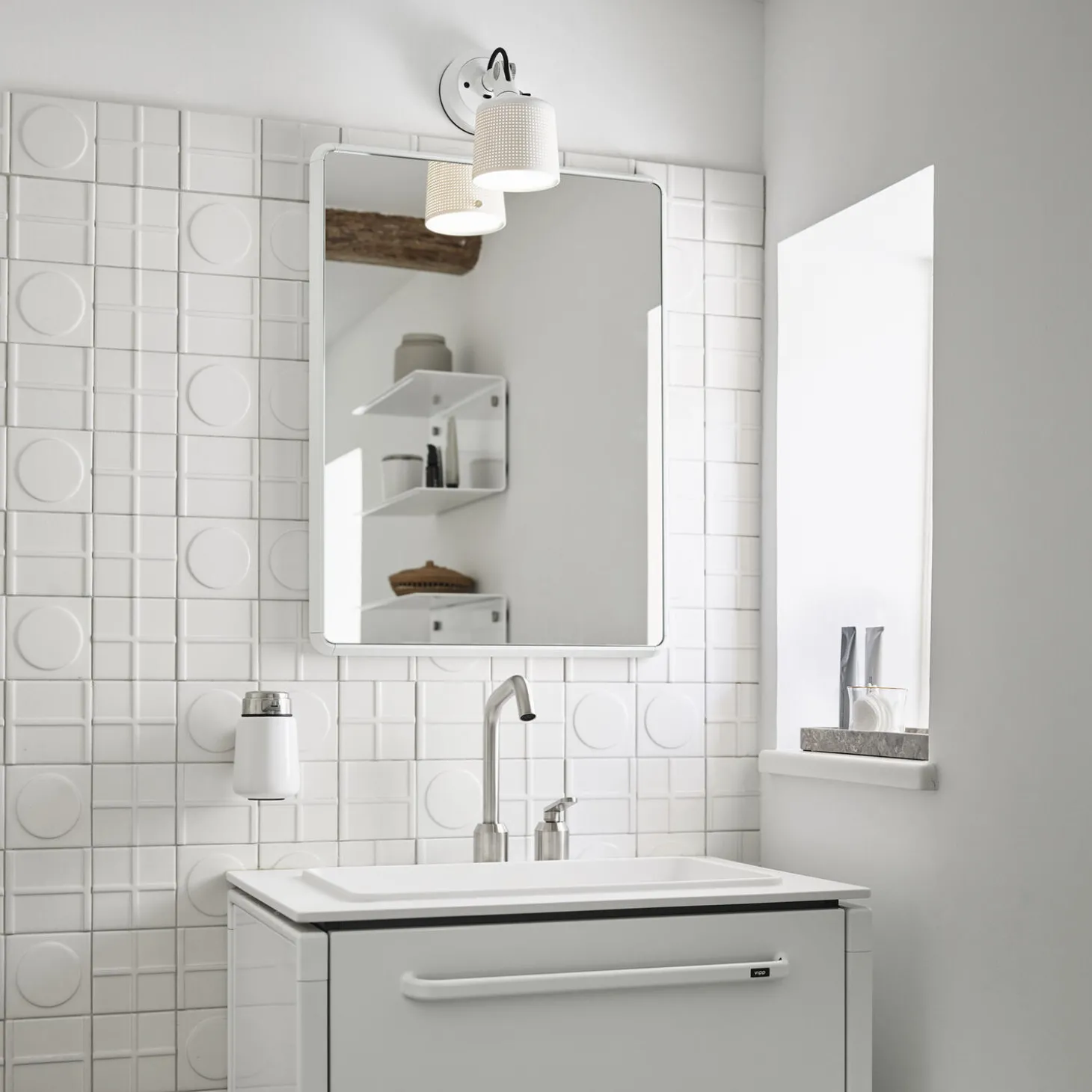 Dette er det mindste spejl i Vipp serien til brug på små badeværelser eller i gangen. Spejlet er kraftfuldt i sin enkelthed og er udstyret med en afrundet ramme, der omkranser vandresistent glas.