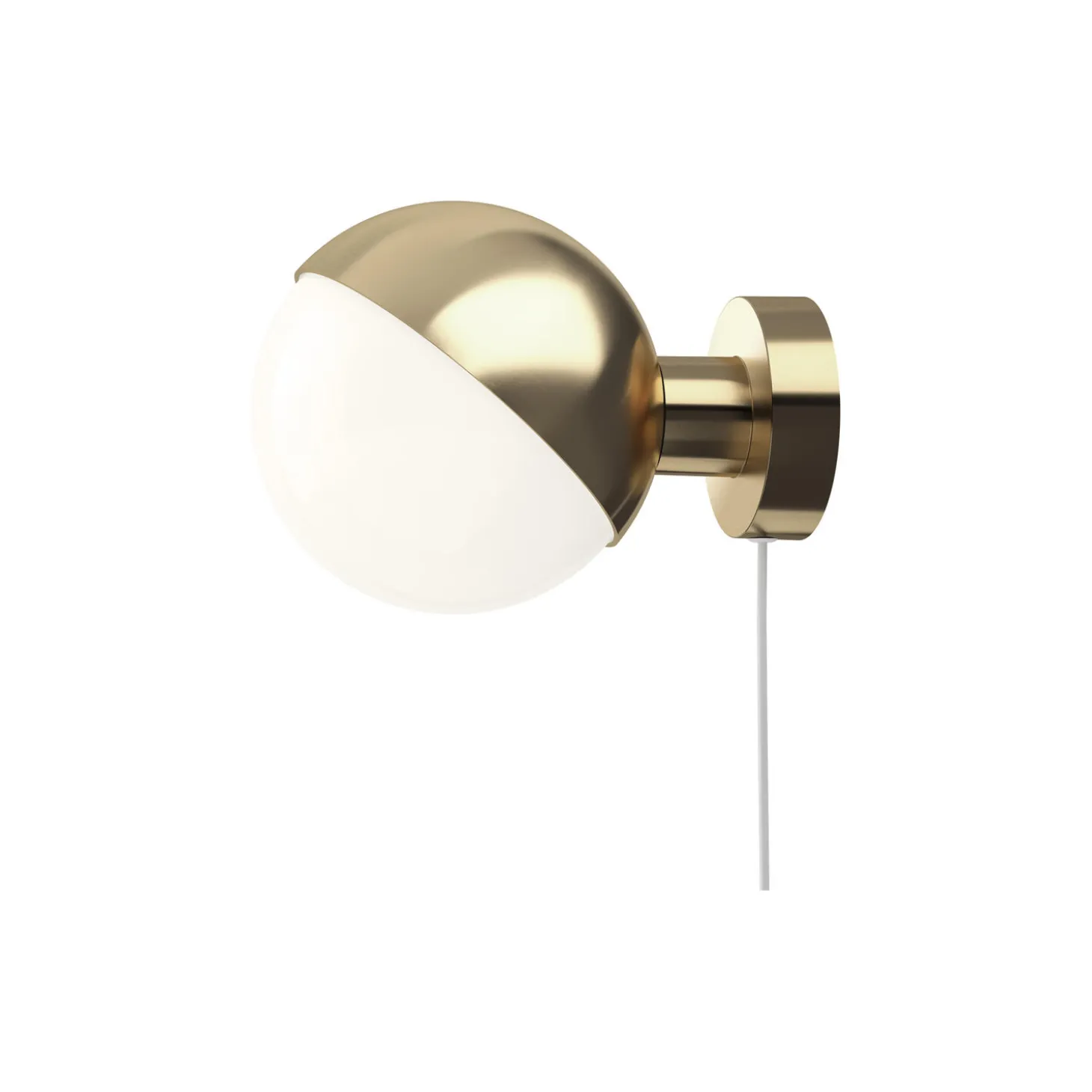 - Materiale: mundblæst blankt opalt trelagsglas med armaturhus i optrukket ubehandlet messing og bagdåse i smedet messing, der vil patinere