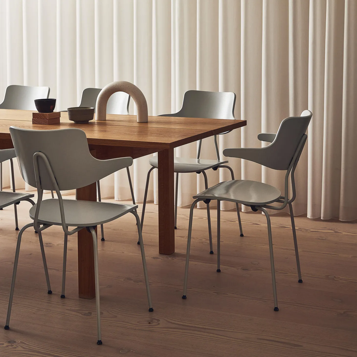 Denne unikke spisebordsstol har kombineret ryg- og armstøtte i et formfuldendt ryglæn. Stolen er elegant udformet i en kombination af FSC-certificeret træ og højstyrkestål med mulighed for polstring i stof eller læder – alt er monteret i hånden på vores faciliteter i Aalborg. Materialesammensætningen giver et perfekt samspil mellem funktion, æstetik og komfort.