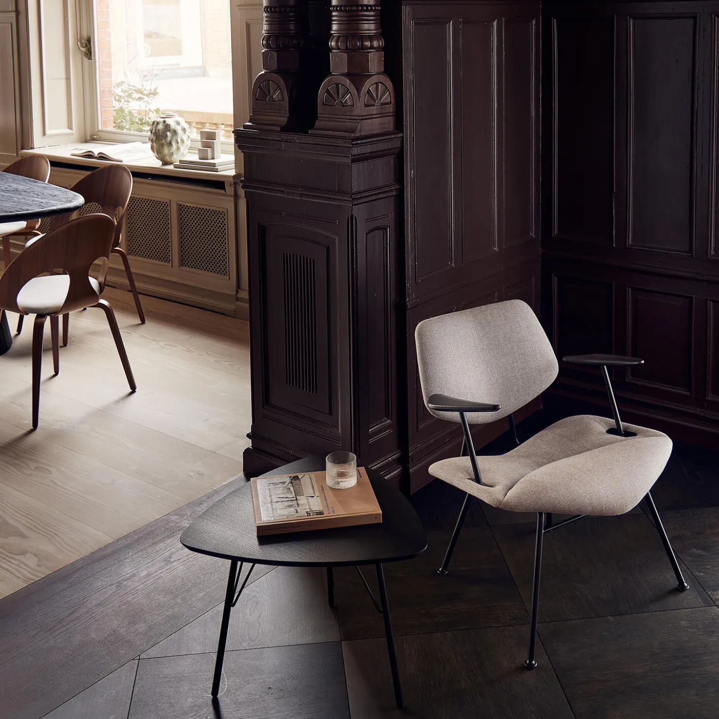 - Materiale: fuldpolstret i Re-wool 0108 lysegrå tekstil af Kvadrat og stel i sort højstyrkestål