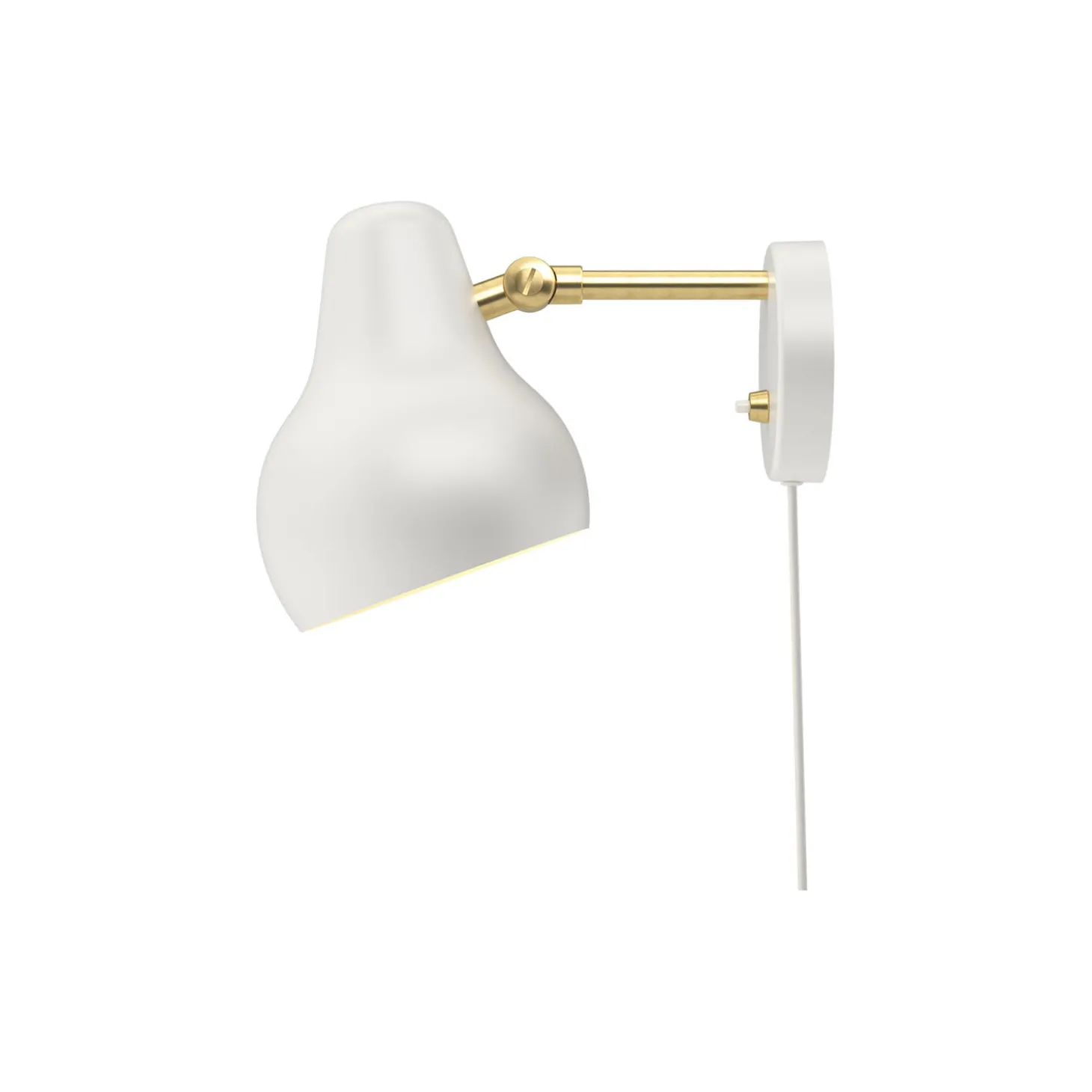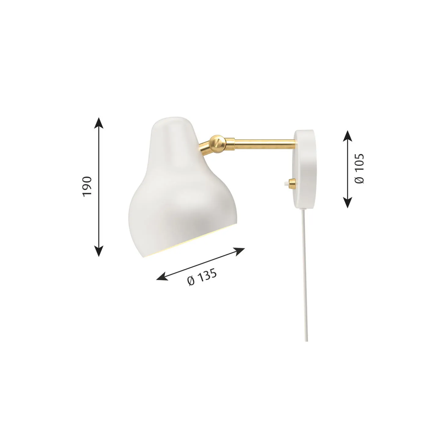 VL38 væglampe i pulverlakeret aluminium med arm i messing fra Louis Poulsen. Farve: hvid. Mål: H: 19 x Ø 13,5 cm. Lyskilde: LED 2700K 9.6W. Design: Vilhelm Lauritzen.