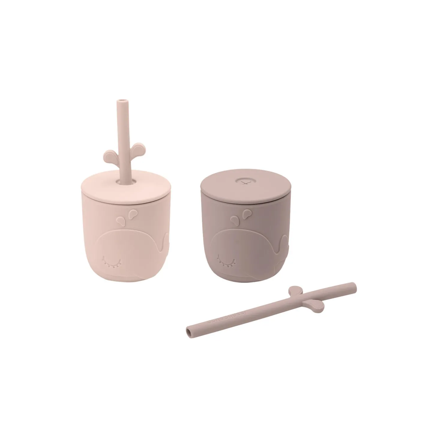 Wally Peekaboo sugerørskopsæt i 100% fødevaregodkendt silikone fra Done by Deer. Farve: powder. Mål: H: 7/13,5 x Ø 7 cm. Indeholder: 120 ml. Antal: 2 stk.