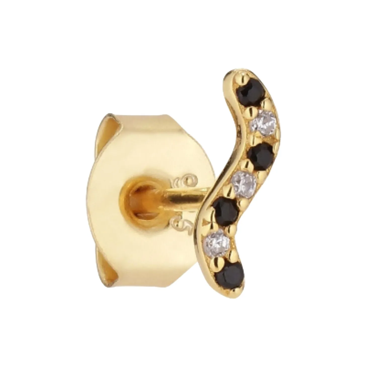 Lille ørestik i bølgende form med klare og sorte sten. Sælges enkeltvis.