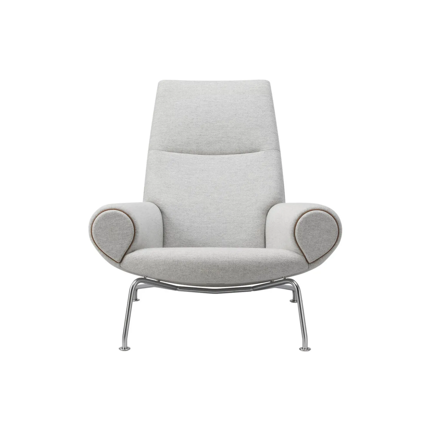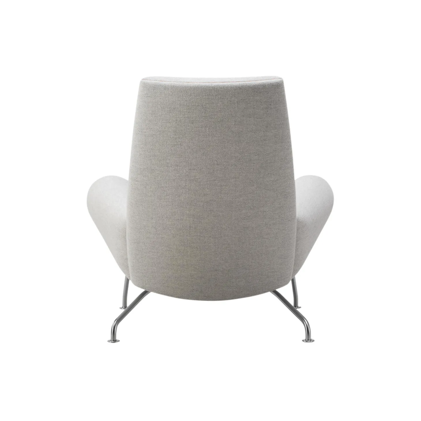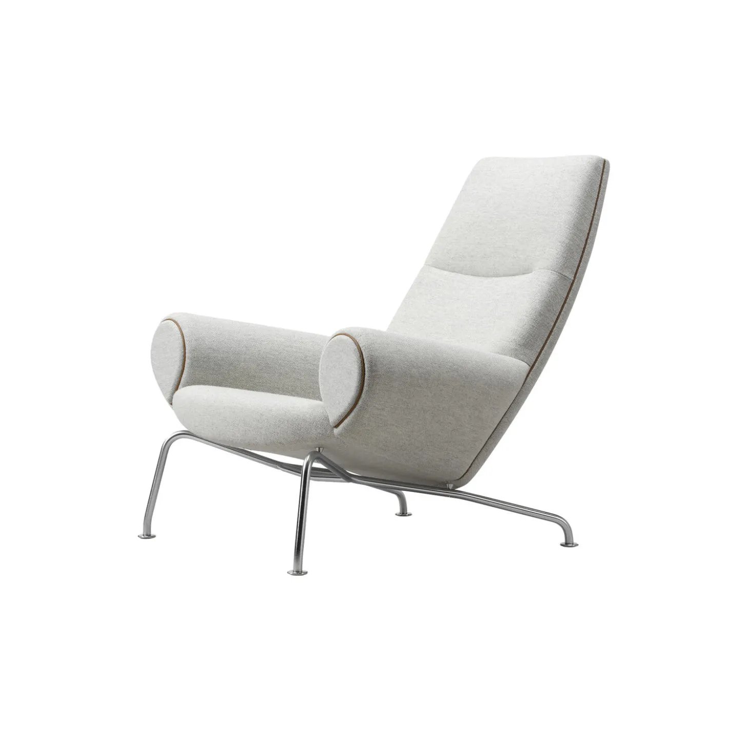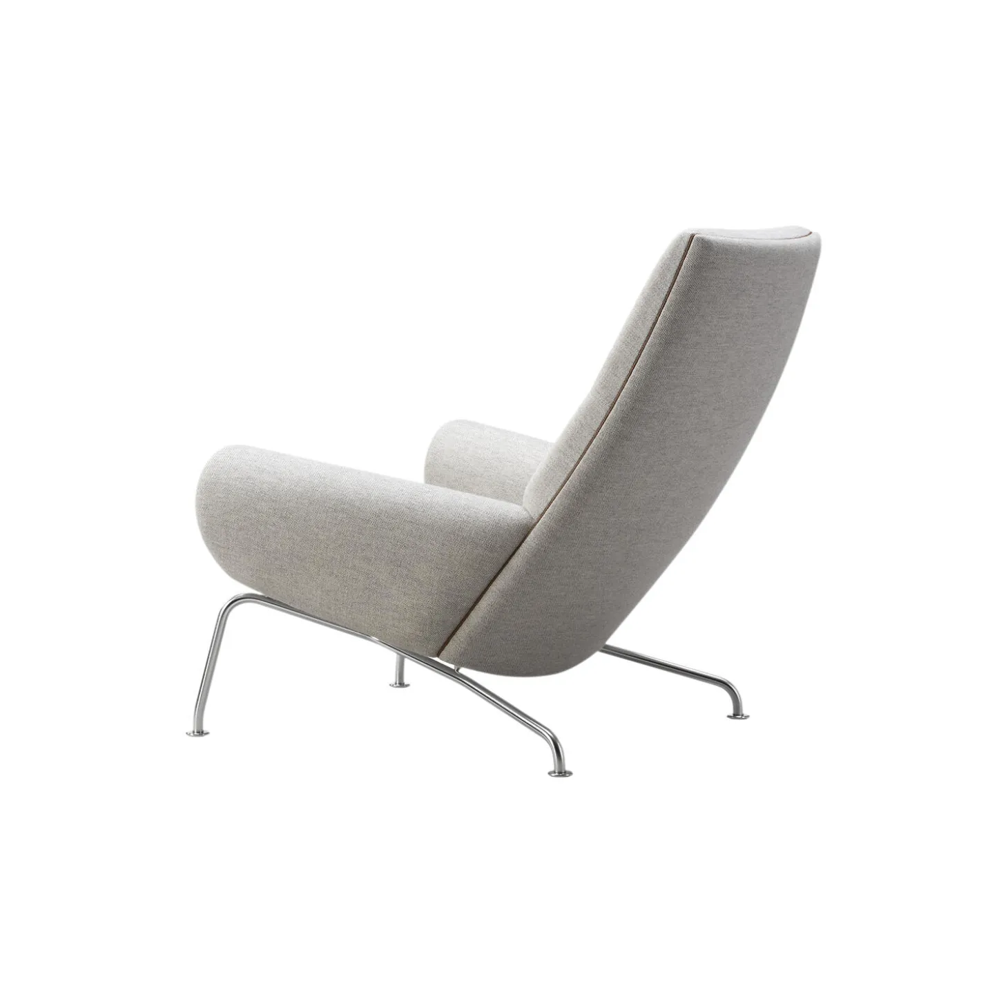 Wegner Queen Chair fuldpolstret i Halingdal 110 af Kvadrat, sømkant i Leather Max 91 nutshell og stel i børstet rustfrit stål fra Fredericia. Farve: Hallingdal 110. Mål: H: 90 x B: 92 x D: 99 cm. Siddehøjde: 36 cm. Design: Hans J. Wegner.
