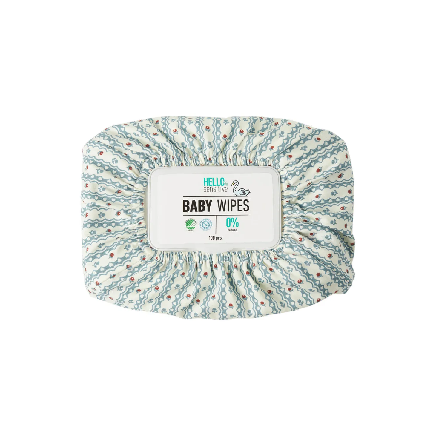 Betræk til vådservietter med elastiklukning som passer rundt om låget. Passer til en standard størrelse pakke vådservietter. Måler 20cm x 12cm.