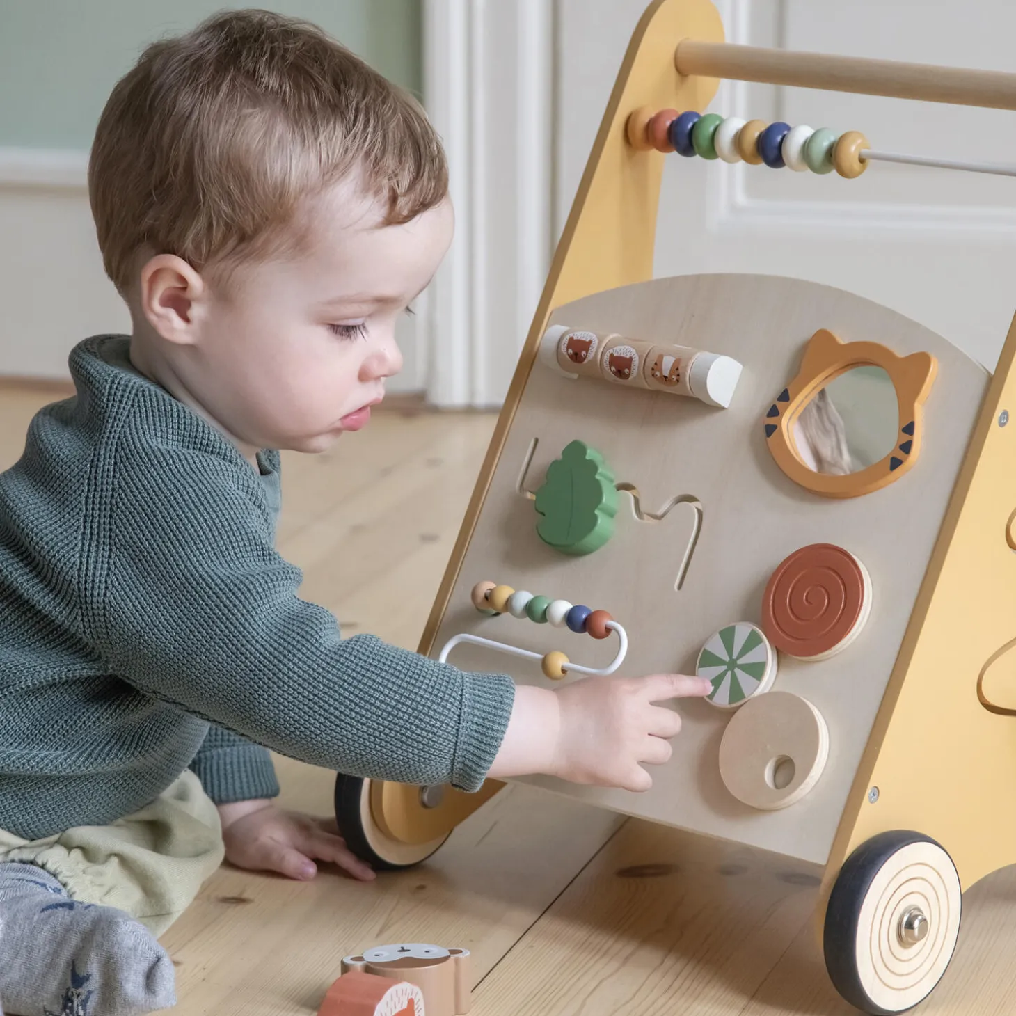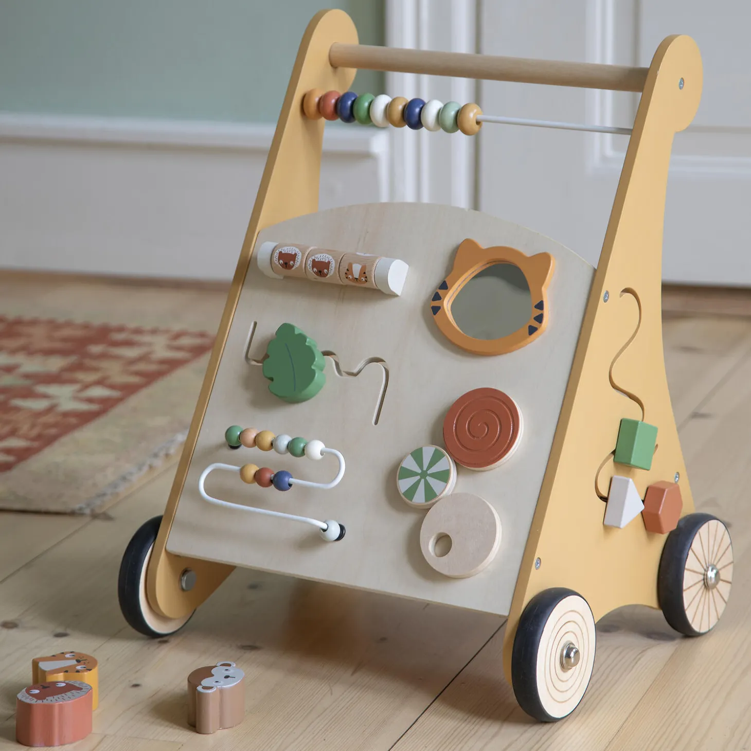 Giv din baby den perfekte støtte til de første skridt med den flotte aktivitetsgåvogn i certificeret træ og elementer fra Sebras Wildlife-tema.