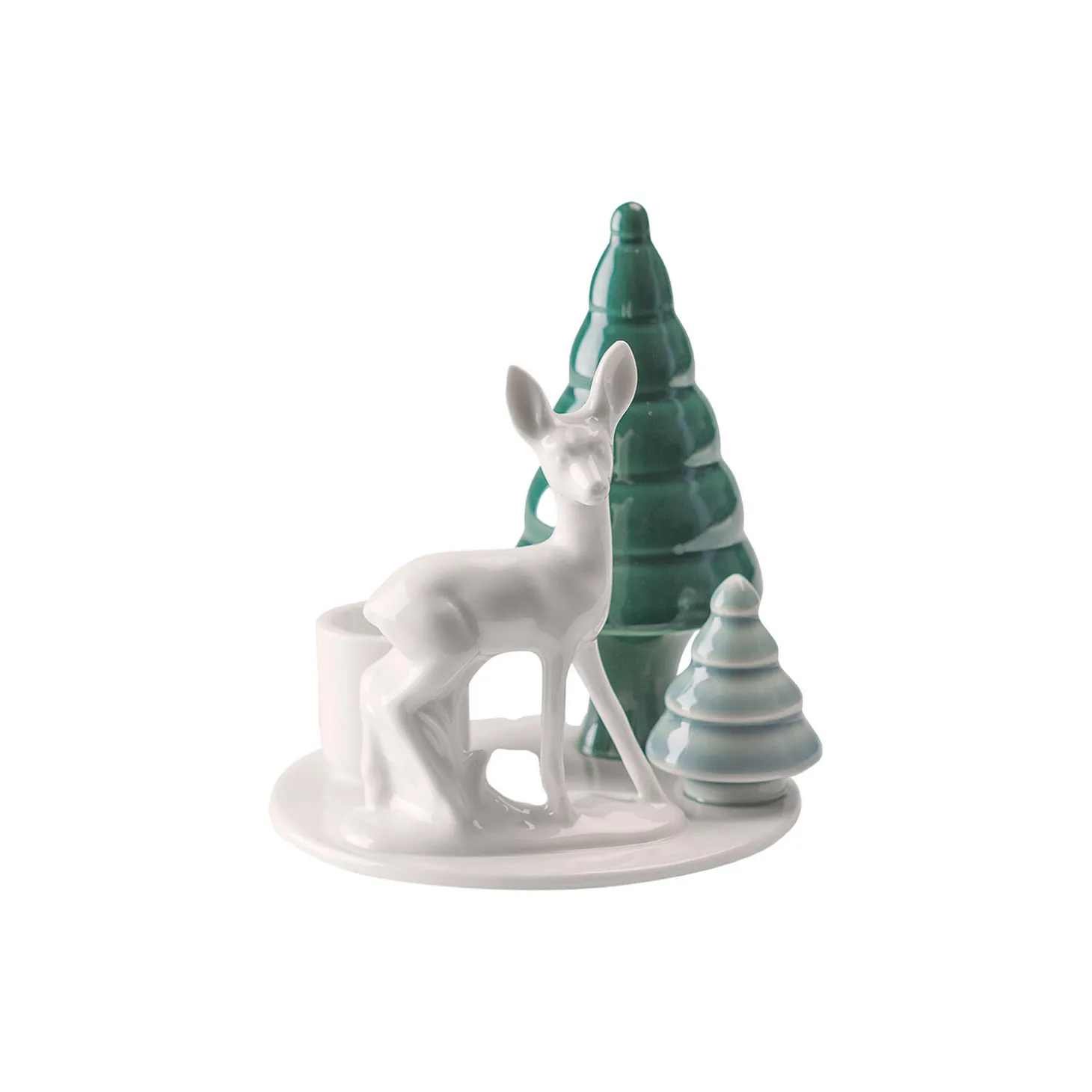 Lysestage med bambi og to træer. Brug kronelys. Winter Stories er små magiske fortællinger om nordens særlige lys og landskab. De bringer varme og hygge til de mørke vinterdage.