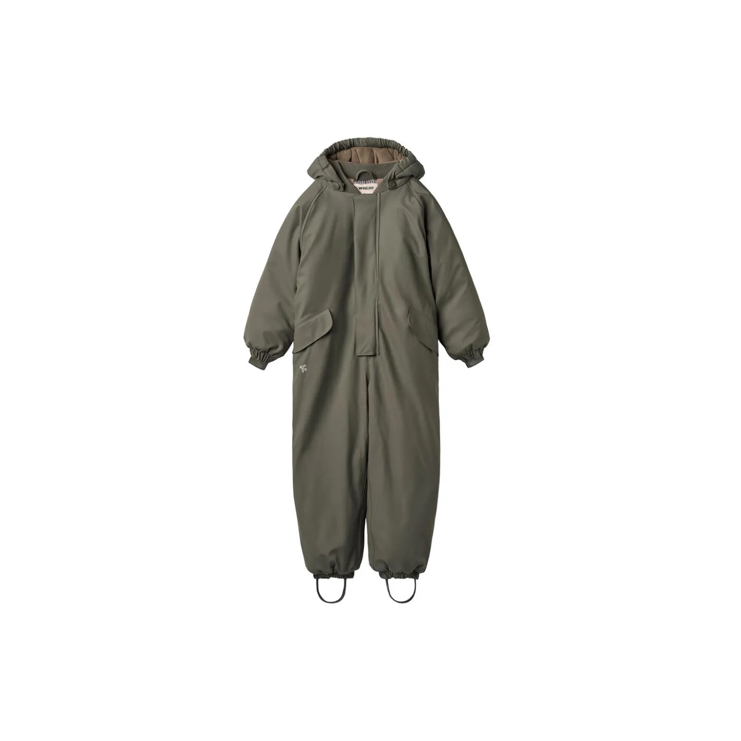 The essential wintersuit for the junior child is breathable, waterproof and warm, as it’s the perfect combination between a rainsuit and snowsuit. – Regular fit- Detachable and adjustable hood – Elastic suspenders- Pockets with press buttons- Hidden zipper down the front- Detachable rubber strap under the feet- Wind cuffs with elastics at the sleeves- Elastics at the leg hems- ReflectorsWheat’s wintersuits are the perfect mixture between Wheat’s rainsuit and snowsuit. This suit has a heavier winter padding, which makes it warm on even the coldest and wettest winter days. The wintersuit is made in breathable polyurethane (PU) material and is therefore unique, as it can keep your child both dry and warm. —Waterproof: 9.000 mmBreathability: 600 g/m2/24 hStandard 100 by OEKO-TEX®PFC-freeFlourine-free Waterproof zipper Welded seams—Shell fabric: 100% Recycled polyester with breathable polyurethane coatingPadding: 100% Recycled polyesterLining: 100% Recycled polyester