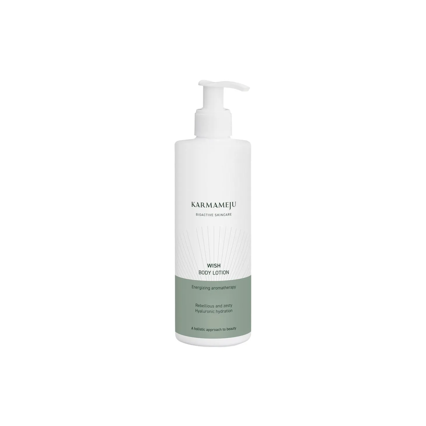Wish Body Lotion 03 fra Karmameju. Let absorberende bodylotion, der styrker hudens beskyttende barrierer og tilfører fugt. Indeholder: 400 ml.