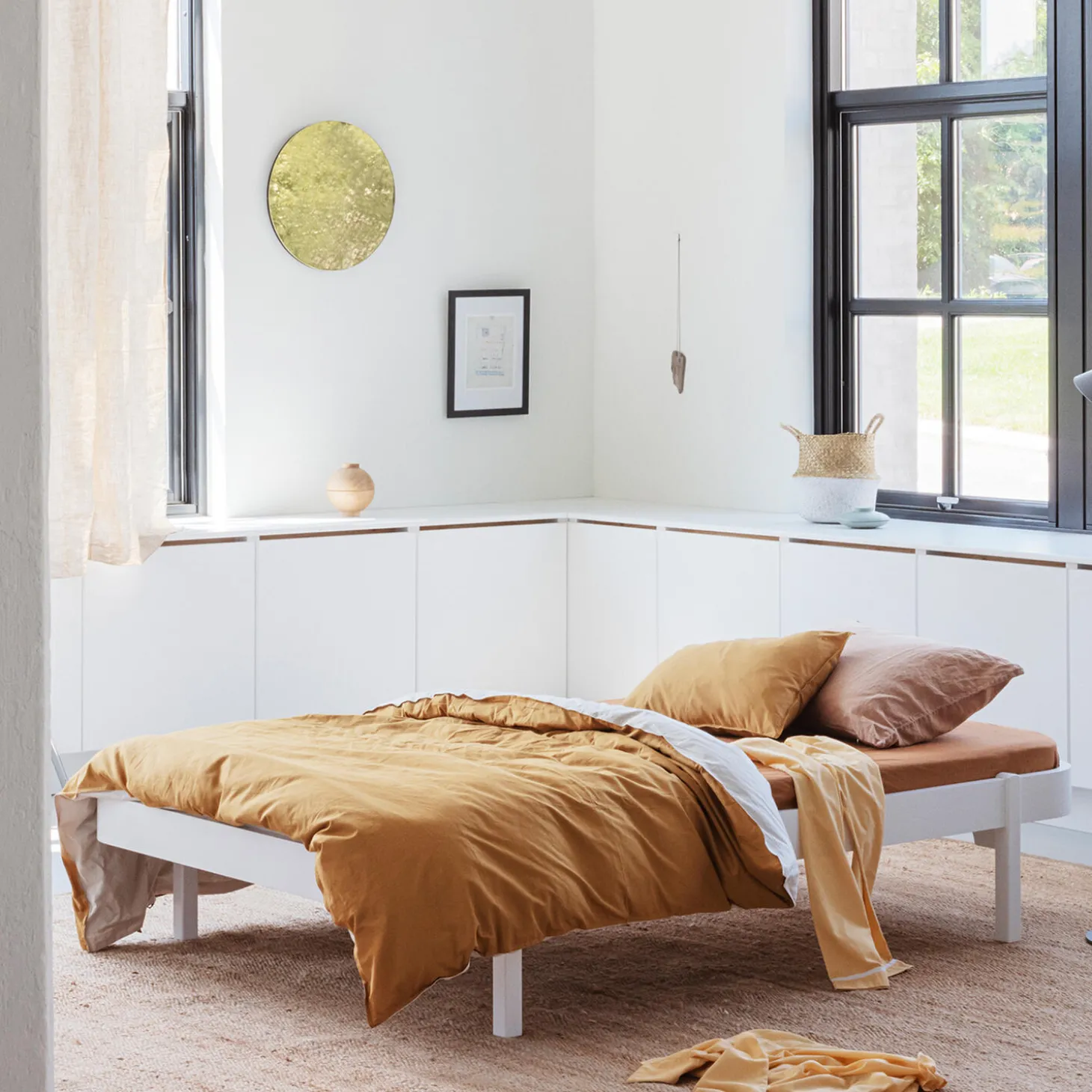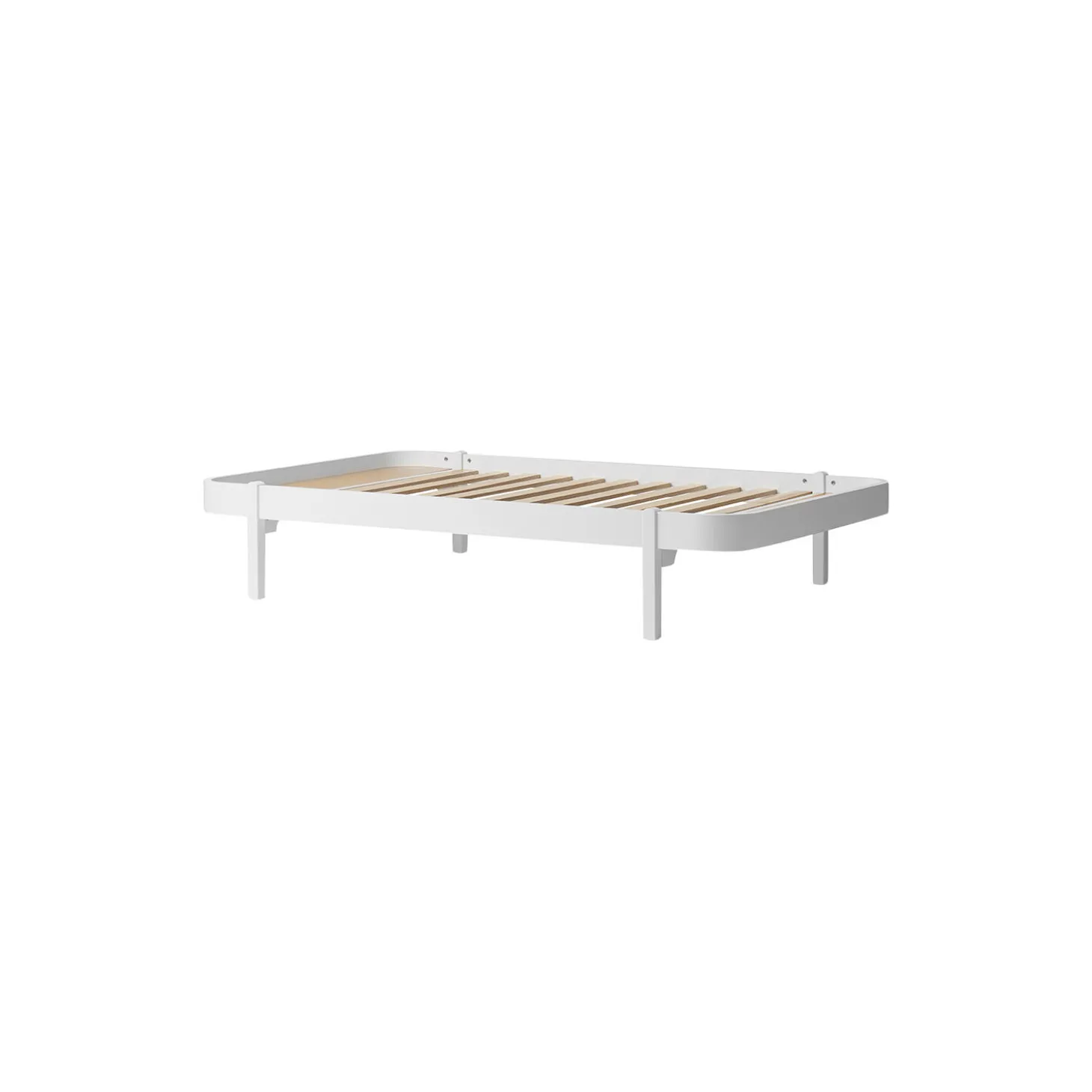 Wood Lounger er, som navnet antyder, en seng, der med sit enkle design og de raffinerede detaljer fremstår som en stilfuld daybed. Med en harmonisk og delikat fremtoning, er Wood Lounger oplagt i børne- og teenageværelset, i såvel den smalle som den brede version, eller i stuen, hvor den tilfører en stille elegance som base for den personlige indretning.Loungerens hvidlakerede ramme kan kombineres med ben i hvid eller hvidolieret eg, og de rundede former og usynlige samlinger skaber en visuel lethed og et ubesværet udtryk i indretningen. I de klassiske dimensioner på 90 cm i bredden er sengen oplagt i det mindre børneværelse, mens den bredere version på 120 cm tilgodeser de større børn og teenagerens behov for mere sengeplads – og måske en overnattende ven. De generøse mål giver desuden god mulighed for at skabe sit eget sofa-look, da Loungeren med en personlig indretning nemt kan iscenesættes til hyggeligt hang-out, hvor hemmeligheder, gode ideer og tanker om livet kan udveksles.Wood Lounger senge er fremstillet i birketræ og MDF, der er konstrueret træ, der består af 60% birk, 20% fyrretræ og 20% asp træ. MDF er meget stærkt og holdbart. Serien tilbydes i to forskellige modeller: en med ben i smuk, hvid-olieret massiv eg og en i helt hvid med ben i massiv birk.De ikke-synlige skruer giver sengen et rent og eksklusivt design og er særligt kendetegnende for Oliver Furniture. Stilen er skandinavisk og udmærker sig i høj grad ved de udsøgte, håndværksmæssige detaljer.Sengen er produceret i Europa og overholder de strenge EU-krav for sikkerhed og sundhed. Sengen er malet med ikke-giftig, vandbaseret maling.Bæreevne (statisk vægt): 120 kg