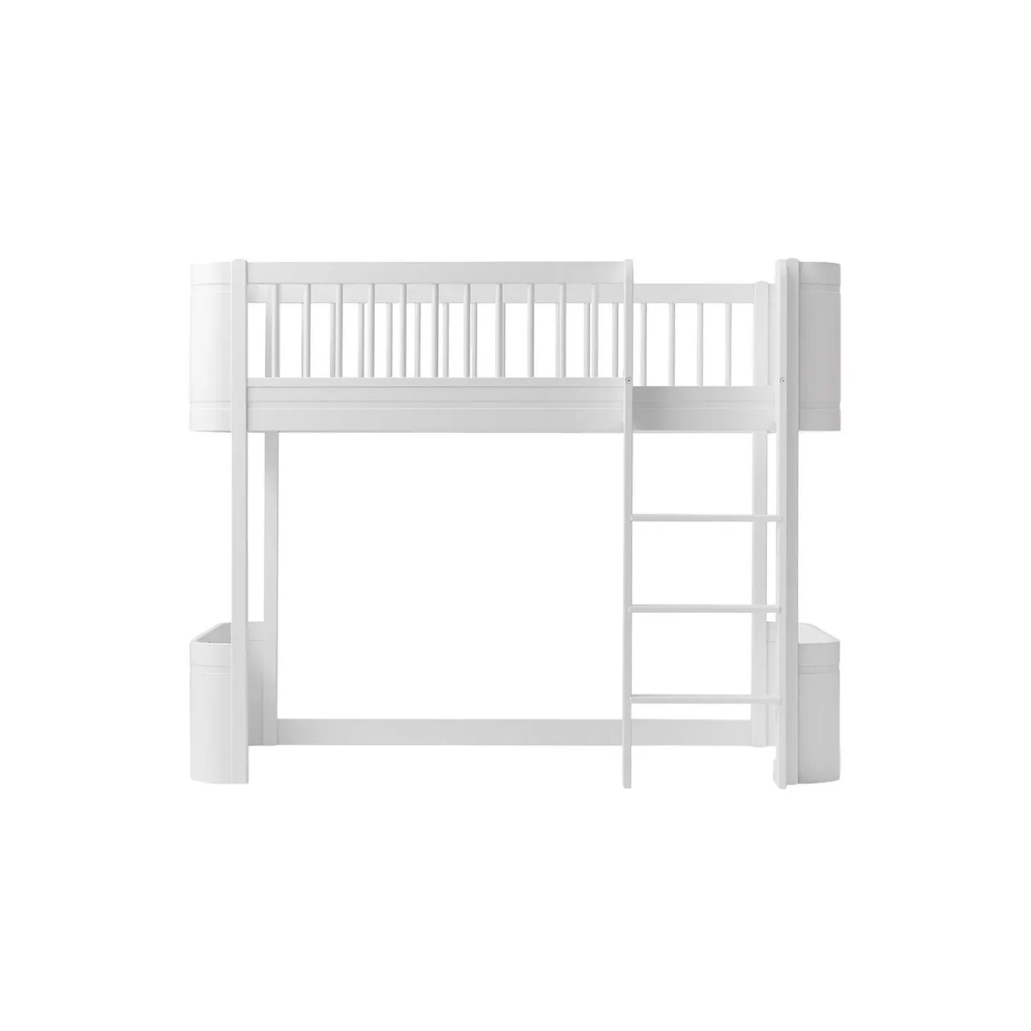 Wood Mini+ halvhøj seng i nyt nordisk design. Wood Mini+ er tidløs i udseende med runde bløde former, som giver sengen et indbydende og rart udtryk. Mini+ halvhøj seng er mindre i både bredde og længde end den klassiske halvhøje seng fra Wood Collection, og kan derfor også bruges på små børneværelser. Wood Mini+ har plads under selve sengen til f.eks. en hyggelig hule, som kan lukkes af ved tilkøb af et forhæng.Stigen kan kun placeres i højre side af sengen.Wood Mini+ hvid er fremstillet af massiv og formspændt birk.De ikke-synlige skruer giver sengen et rent og eksklusivt design og er særligt kendetegnende for Oliver Furniture. Stilen er skandinavisk med rene linjer, runde former og enkle detaljer, som læderrem i gavlen.Serien er produceret i Europa og overholder de strenge EU-krav for sikkerhed og sundhed. Produkterne er malet med ikke-giftig, vandbaseret maling.Bæreevne (statisk vægt):Mini+ tremmeseng: 30 kgMini+ juniorseng, halvhøj seng og halvhøj køjeseng: 120 kg