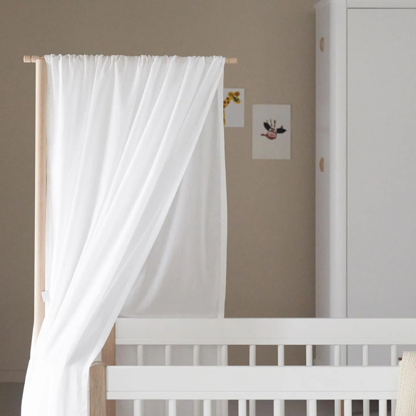 Wood Mini+ sengehimmel skaber tryghed for baby og skærmer for både træk og skarpt lys.