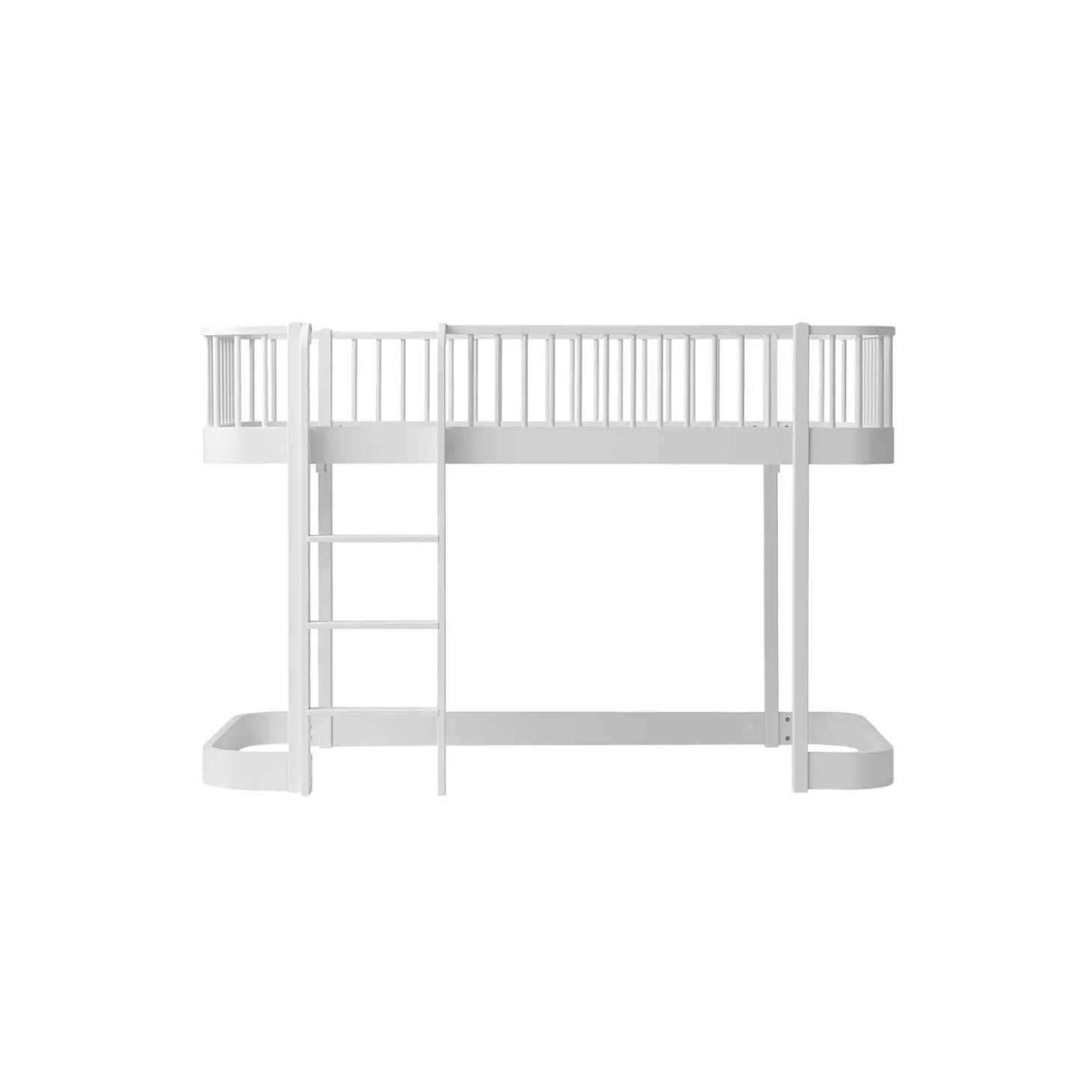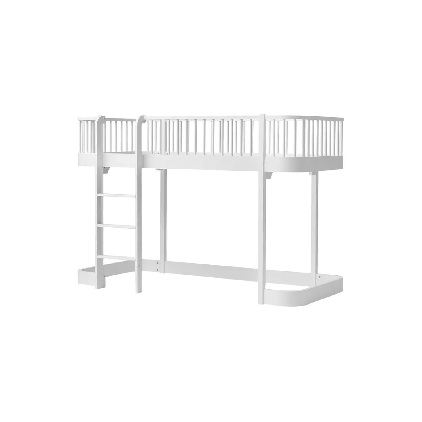 Halvhøj seng i klassisk nordisk design. Runde hjørner og bløde linier er et af kendetegnene ved Wood Collection. Wood Original halvhøj seng fungerer ikke bare som seng, men er også ideel som et sted hvor barnet kan udfolde sig. En stor hule under sengen tænkt til leg og sjov er en populær feature blandt børn. Her kan barnet udfolde sig, udleve egne drømme samt fantasier eller være kreativ med vennerne. For at gøre hulen ekstra hyggelig kan der bestilles forhæng i flere forskellige design til sengen. Wood Original halvhøj seng findes i 2 udgaver. Den kan bestilles med hvide ben eller med ben i smuk hvidolieret nordisk eg.Stigen kan kun placeres i venstre side af sengen.Wood Original serien er fremstillet i birketræ og MDF, der er konstrueret træ, der består af 60% birk, 20% fyrretræ og 20% asp træ. MDF er meget stærkt og holdbart. Serien tilbydes i to forskellige modeller: en med ben i smuk, hvid-olieret massiv eg og en i helt hvid med ben i massiv birk.De ikke-synlige skruer giver sengen et rent og eksklusivt design og er særligt kendetegnende for Oliver Furniture. Stilen er skandinavisk med rene linjer, runde former og enkle detaljer.Sengen er produceret i Europa og overholder de strenge EU-krav for sikkerhed og sundhed. Produkterne er malet med ikke-giftig, vandbaseret maling.Bæreevne (statisk vægt): 120 kg SIKKERHED OG KRAVI henhold til EN 747 er højsenge og den øverste seng i køjesenge ikke egnet til børn under 6 år på grund af risikoen for fald.Et mindre barn kan sove i den nederste køjeseng, eventuelt med en sengehest for ekstra sikkerhed.