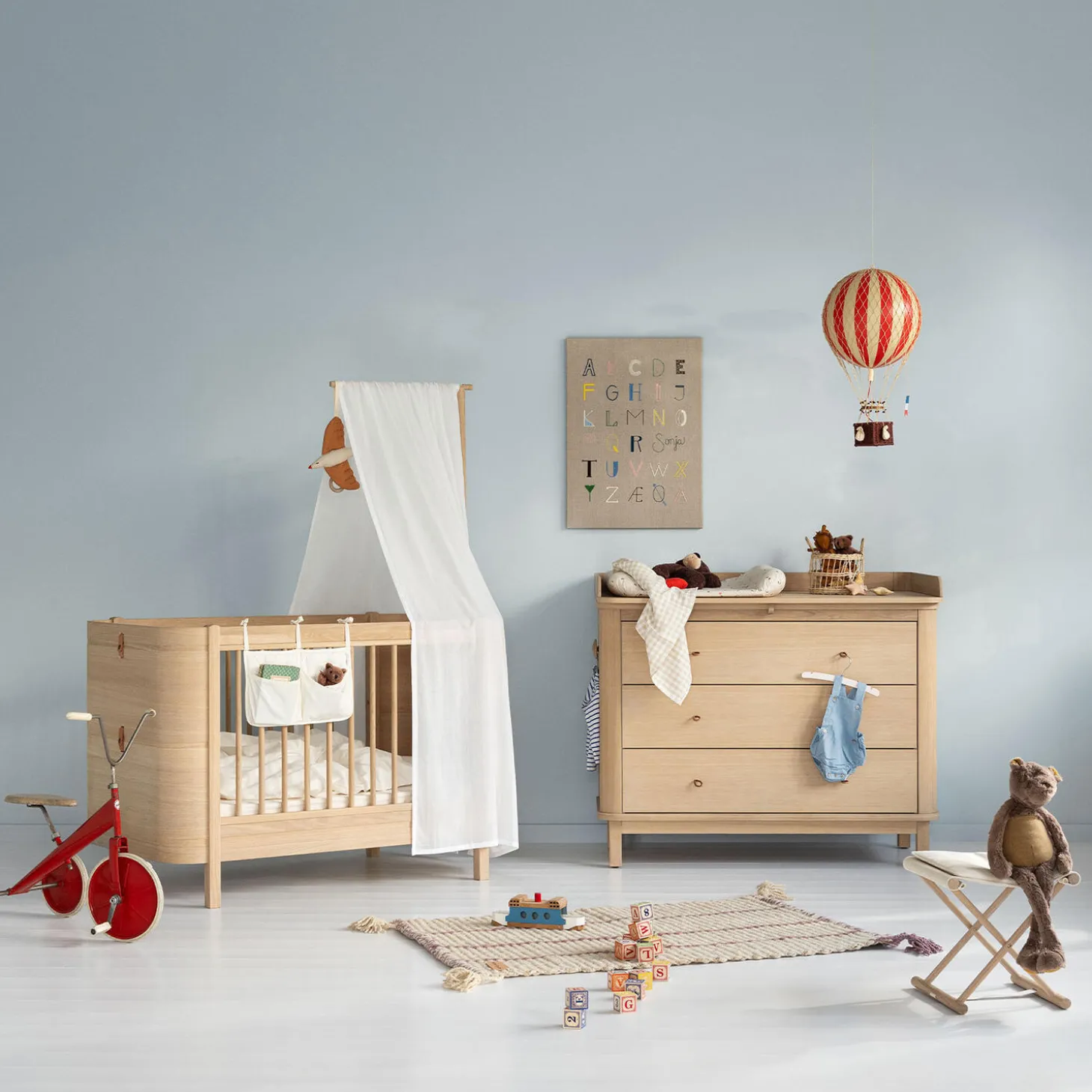 Puslekommoden i eg er en elegant og funktionel løsning til børneværelset. Med sit varme, naturlige udseende og nordiske design tilfører den både stil og praktisk opbevaring. Kommoden har tre rummelige skuffer, hver opdelt i to rum, hvilket giver god plads til opbevaring af babyens tøj, bleer og sengetøj – alt let tilgængeligt, så man kan holde fokus på barnet.Skufferne er monteret på kvalitetsskinner med soft-close, der sikrer, at de glider let og lukker langsomt, hvilket både beskytter små fingre og bidrager til en rolig atmosfære, så barnet kan sove uforstyrret. Puslepladen med afrundede hjørner giver rigelig plads til en puslepude og andet nødvendigt babyudstyr. Greb i 100 % kernelæder fremhæver det stilfulde design, mens de integrerede knager på siderne kan skubbes ud og ind for ekstra opbevaringsmuligheder.Når puslepladen ikke længere er nødvendig, kan den nemt fjernes uden at efterlade spor. Kommoden kan derefter bruges som et elegant møbel i børneværelset eller andre steder i hjemmet. Den høje kvalitet og det tidløse design sikrer, at møblet har en lang levetid.