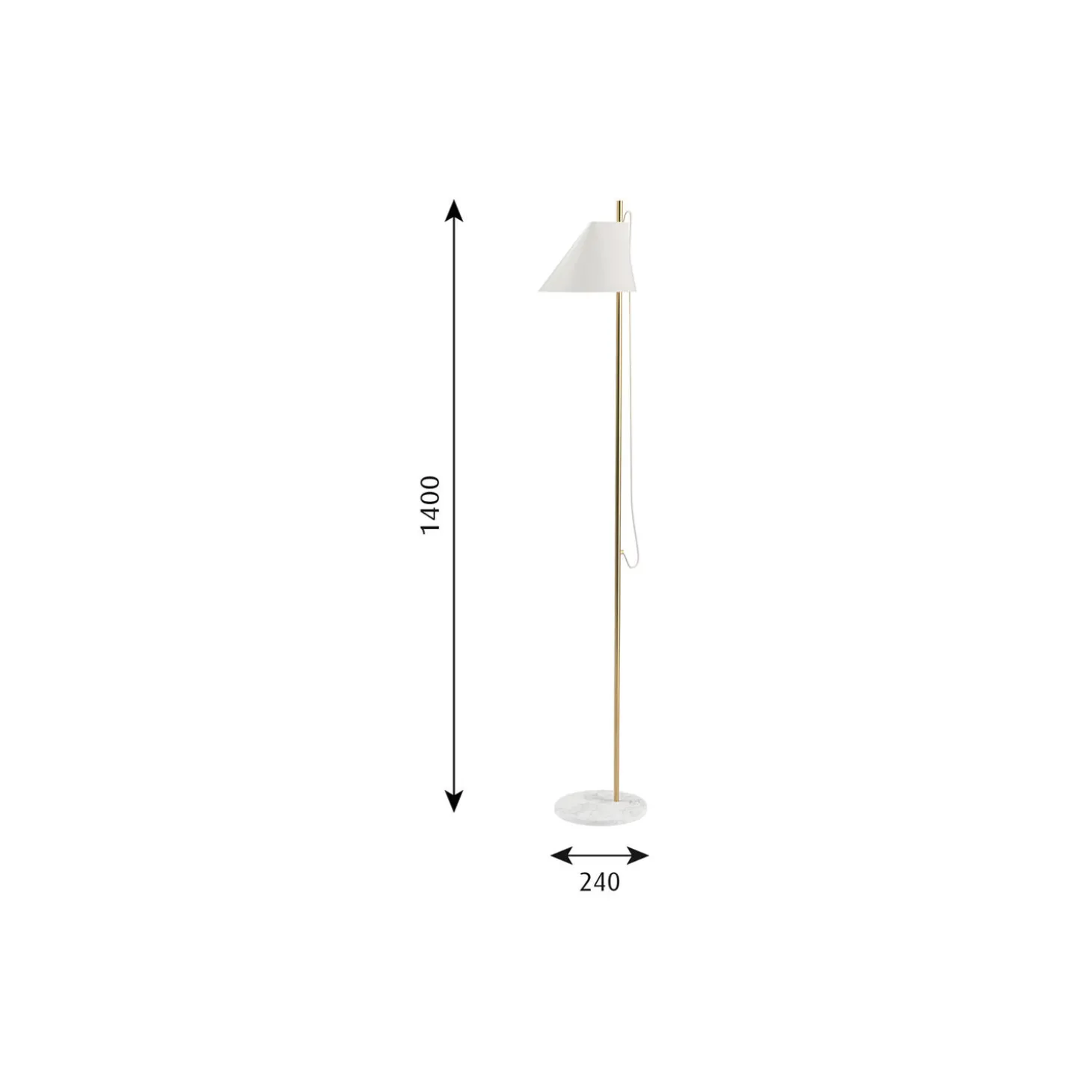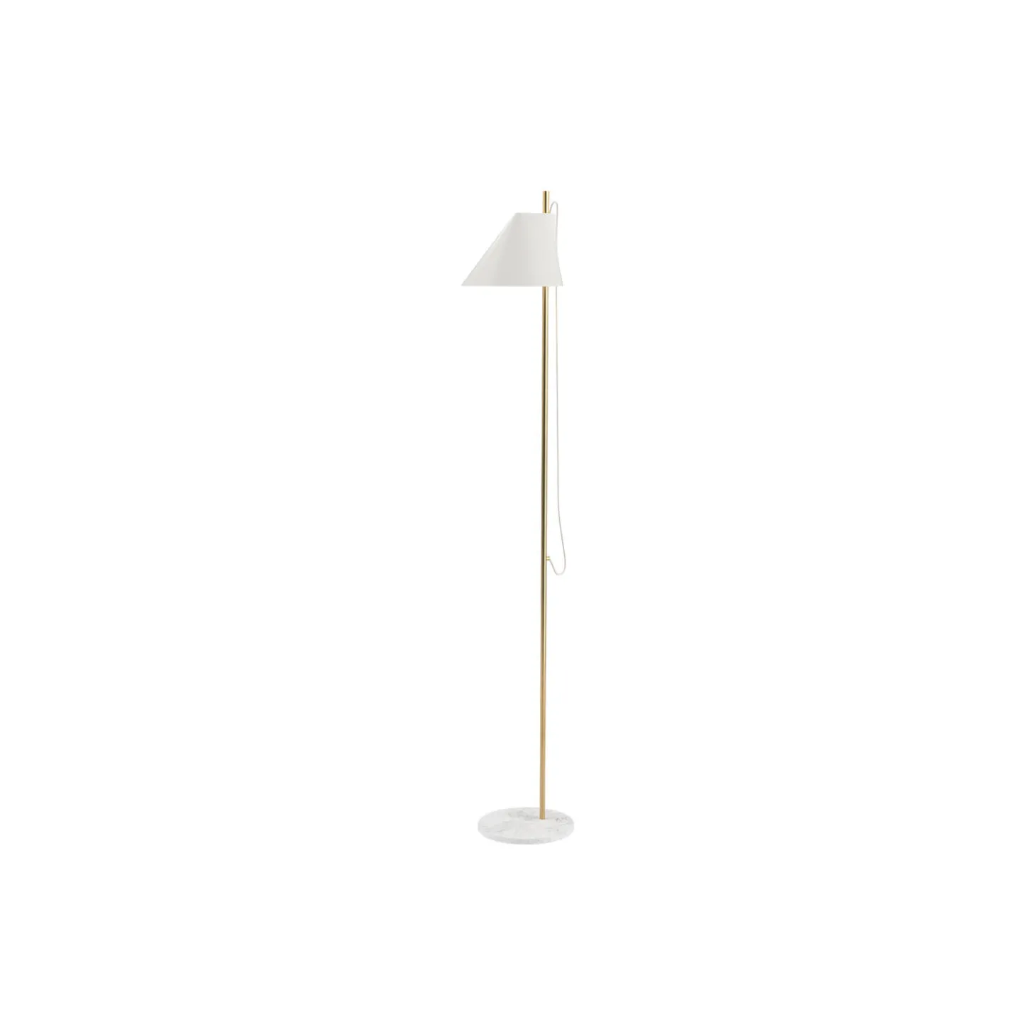Yuh gulvlampe med skærm i støbt aluminium, stander i ekstruderet messing og base i børstet Bianco Carrara marmor fra Louis Poulsen. Farve: hvid. Mål: H: 140 x B: 24 x D: 24 cm. Lyskilde: 10W integreret LED. Design: GamFratesi.